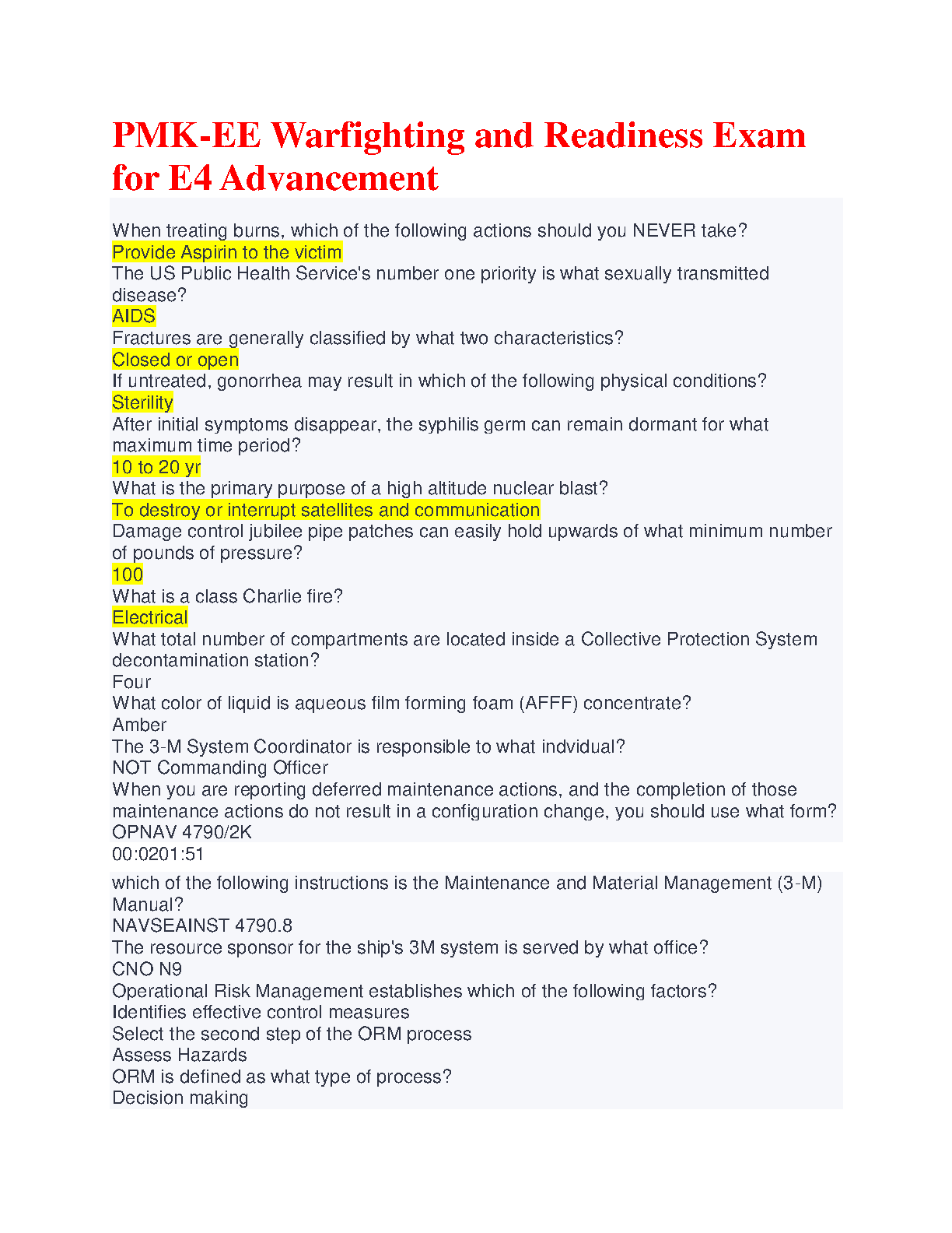 PMK-EE Warfighting and Readiness Exam for E4 Advancement 2024-2025 Edition - Complete Guide to Passing the Exam on Your First Attempt