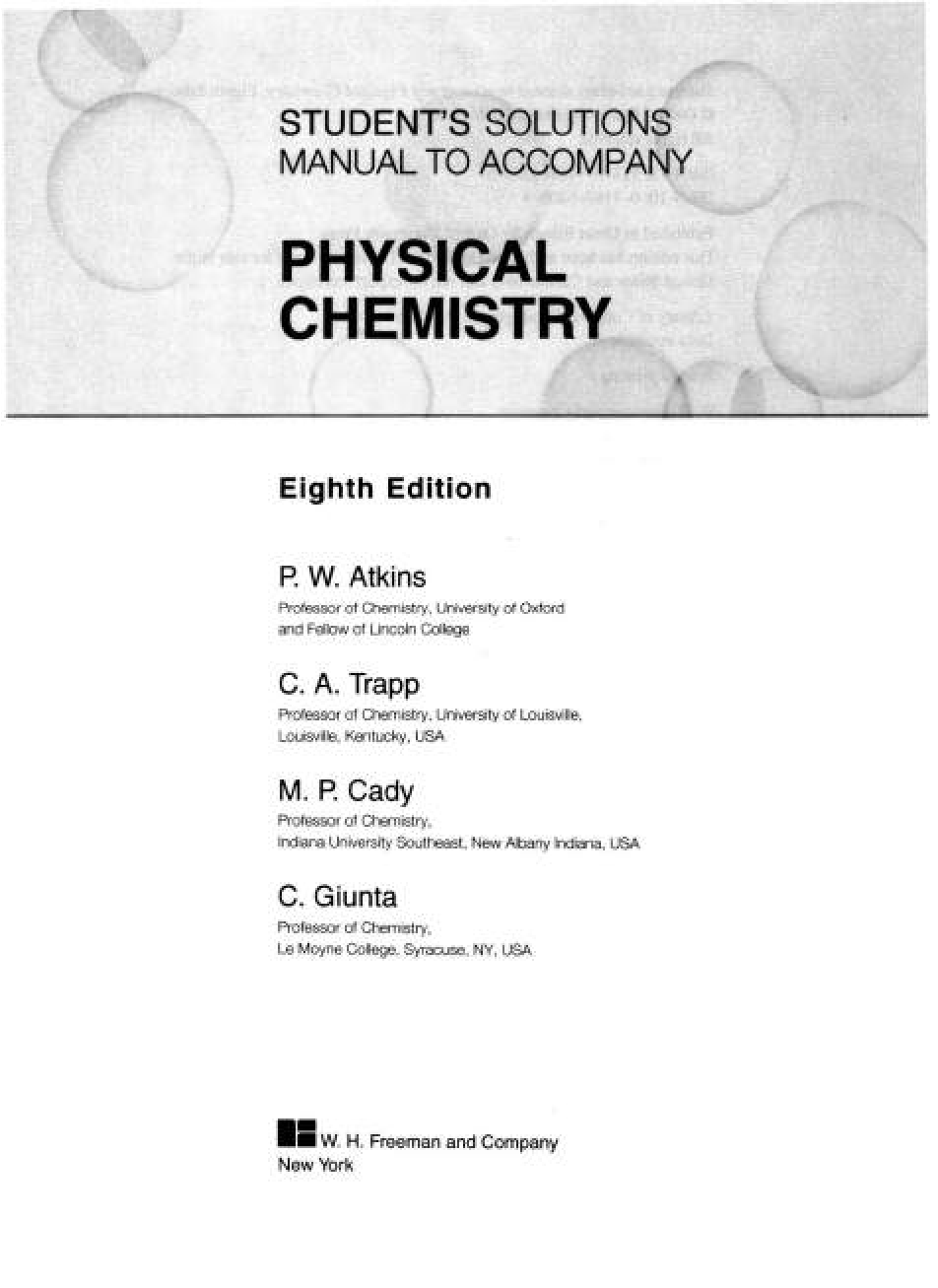 Physical Chemistry 8th Edition Student Solutions Manual by Peter Atkins, Charles Trapp, Carmen Giunta, Marshall Cady