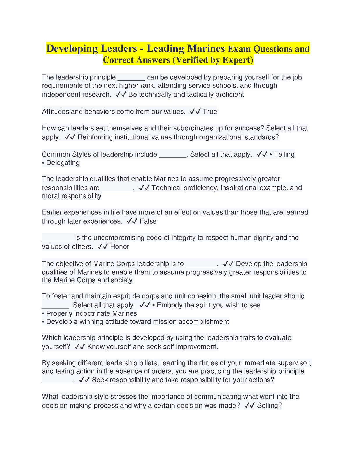 Developing Leaders - Leading Marines Exam Questions and Correct Answers (Verified by Expert)