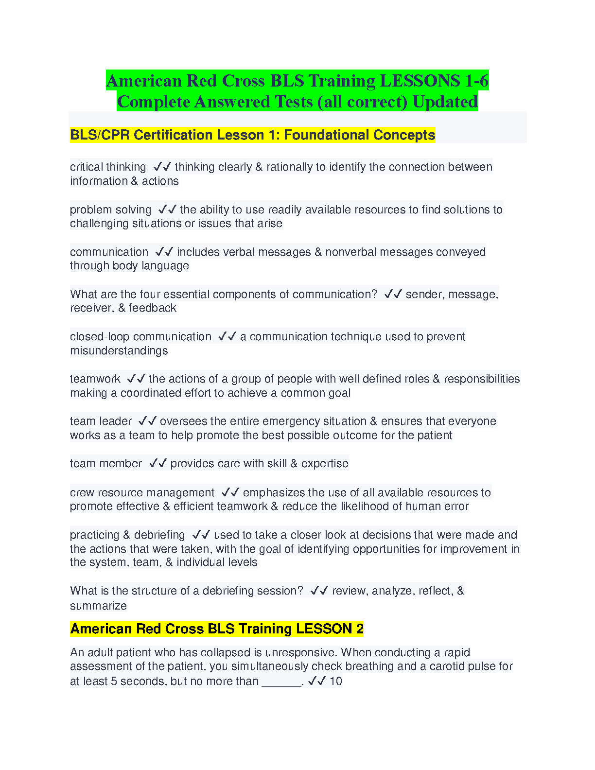 American Red Cross BLS Training Lessons 1-6 Complete Answered Tests (all correct) Updated Edition by [Authors of this book if available online]
