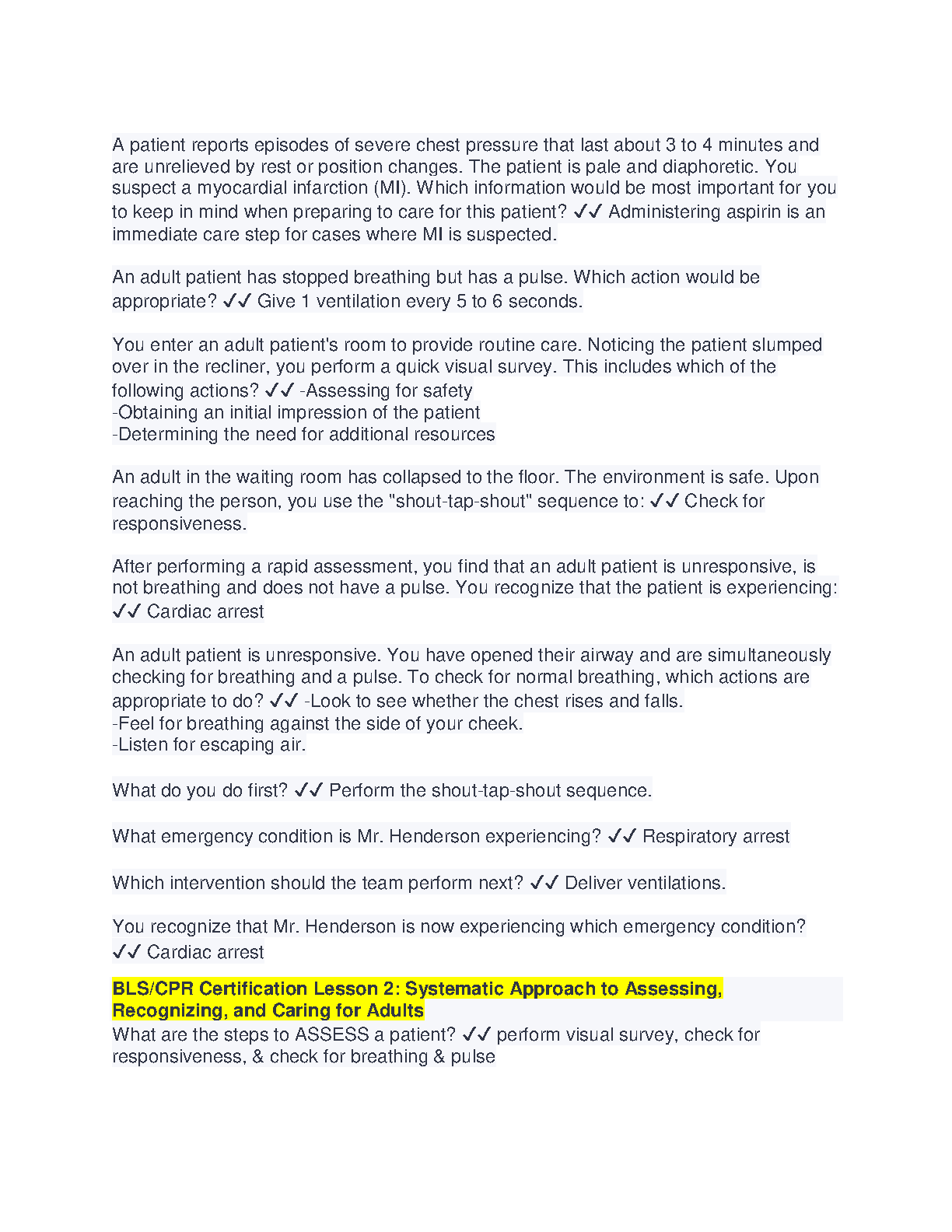 This American Red Cross BLS Training resource is a complete solution for students preparing for their certification exams. It covers all the essential concepts and skills needed to pass on the first attempt and avoid resits. The resource is updated with the latest information and includes all answers to practice questions.