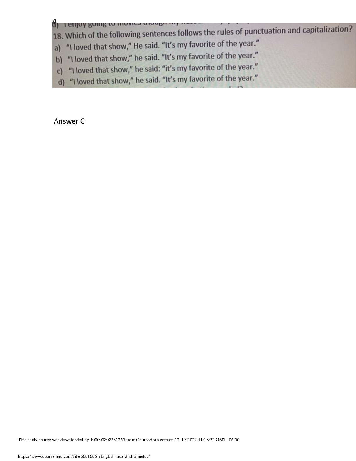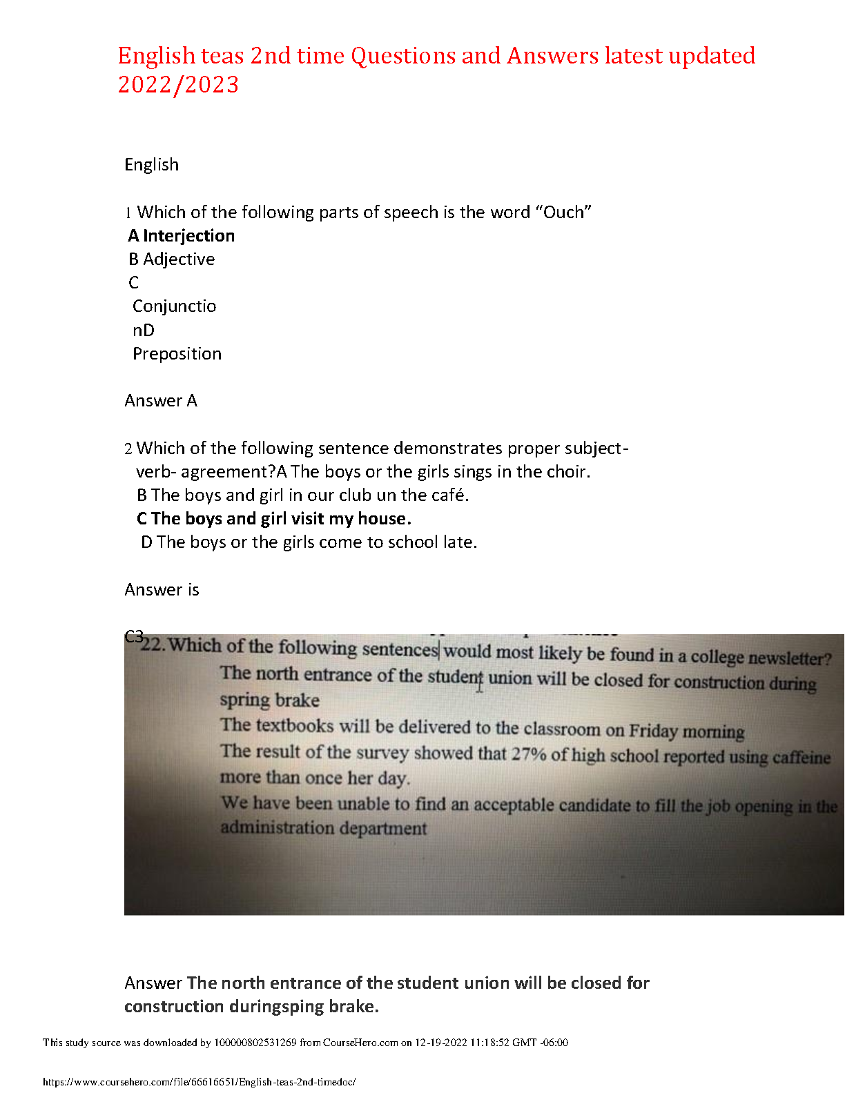 English Teas 2nd Time Questions and Answers Latest Updated 2022/2023