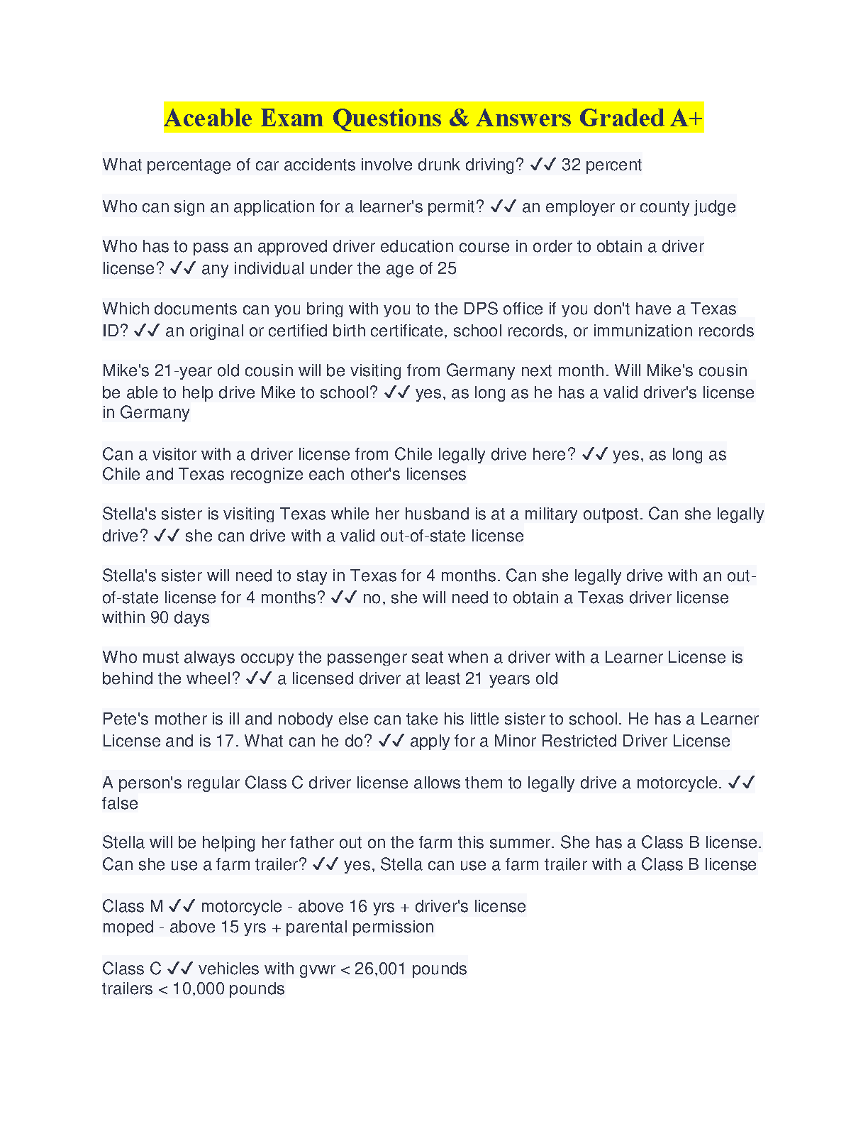 Aceable Exam Questions & Answers Graded A+ is a comprehensive resource designed to help students master the content and confidently pass their exams on the first attempt, reducing the need for resits. This resource covers a wide range of topics, making it ideal for anyone preparing for Aceable exams.