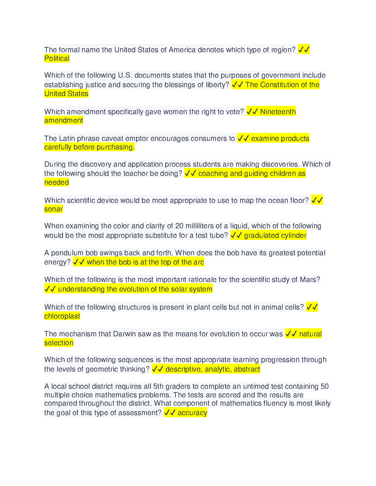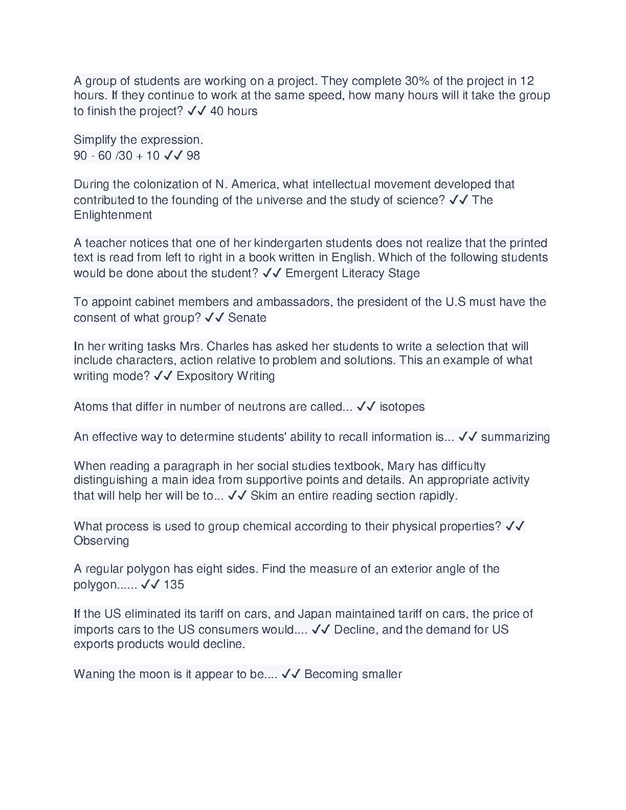 This resource contains practice questions and answers for the FTCE Subject Area Exam K-6, designed to help students prepare for the 2024/2025 academic year. The questions are designed to mirror the format and difficulty level of the actual exam, ensuring that you are well-prepared for test day. This resource will help students understand the test format, identify their strengths and weaknesses, and develop effective test-taking strategies, maximizing their chances of passing on the first attempt and avoiding resits.