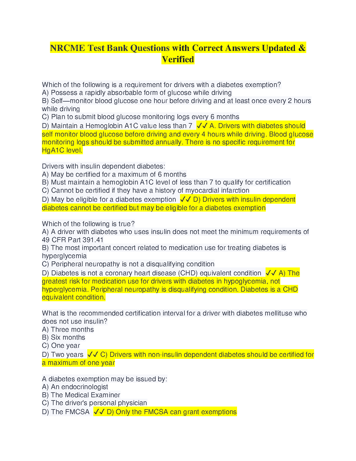 NRMCE Test Bank Questions with Correct Answers Updated & Verified: Latest Edition 2024-2025