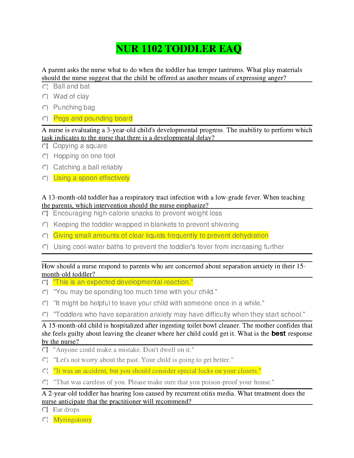 NUR 1102 Toddler EAQ: A Comprehensive Guide for Success in 2024/2025
