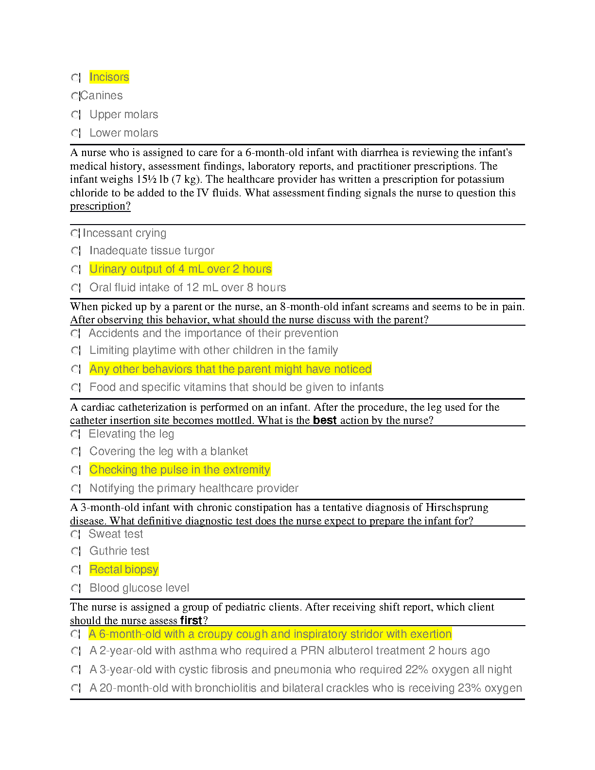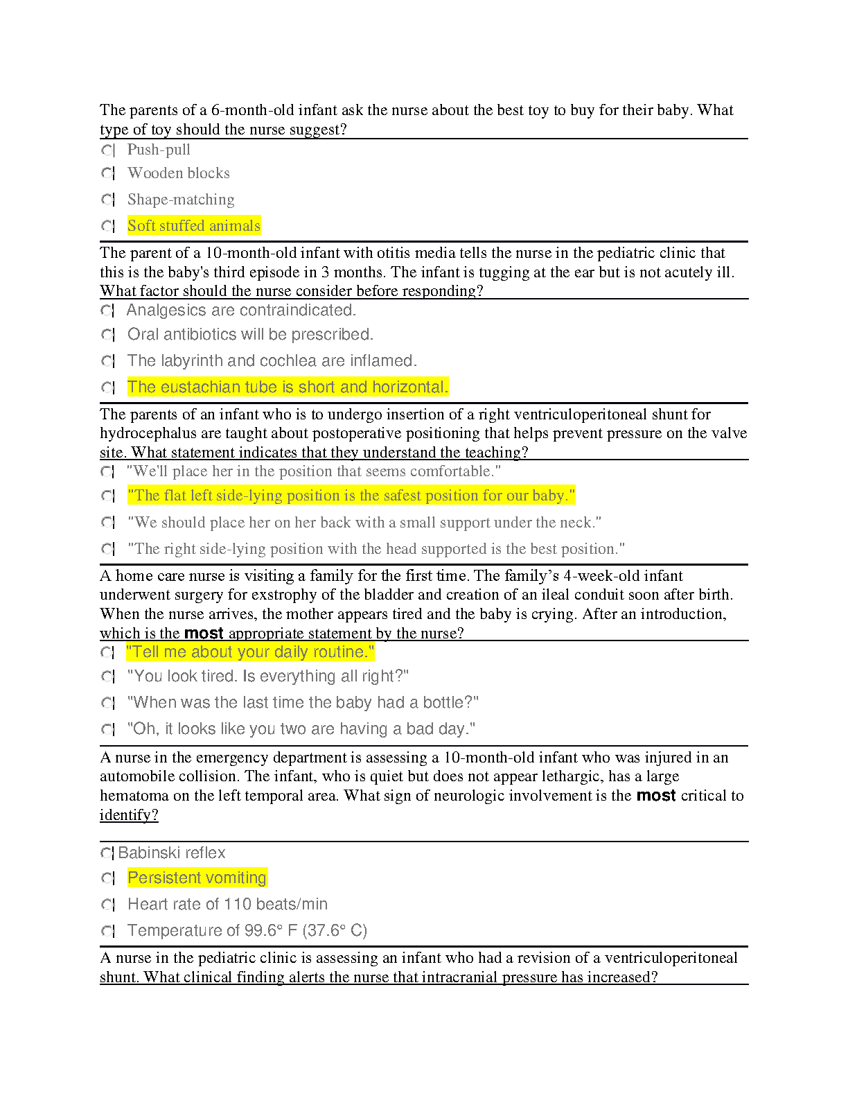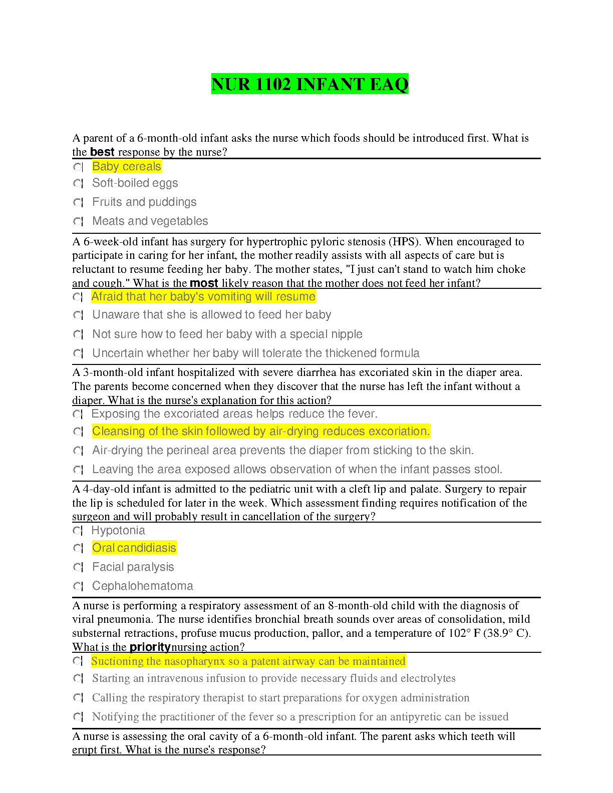 NUR 1102 Infant EAQ: Exam Practice Questions