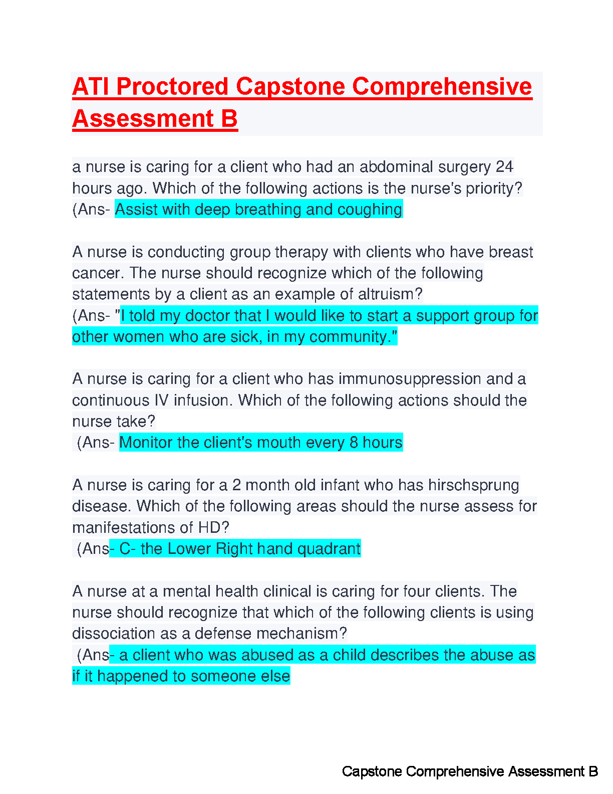ATI Proctored Capstone Comprehensive Assessment B - 2024/2025 Edition - Ace your Nursing Exams on the First Attempt