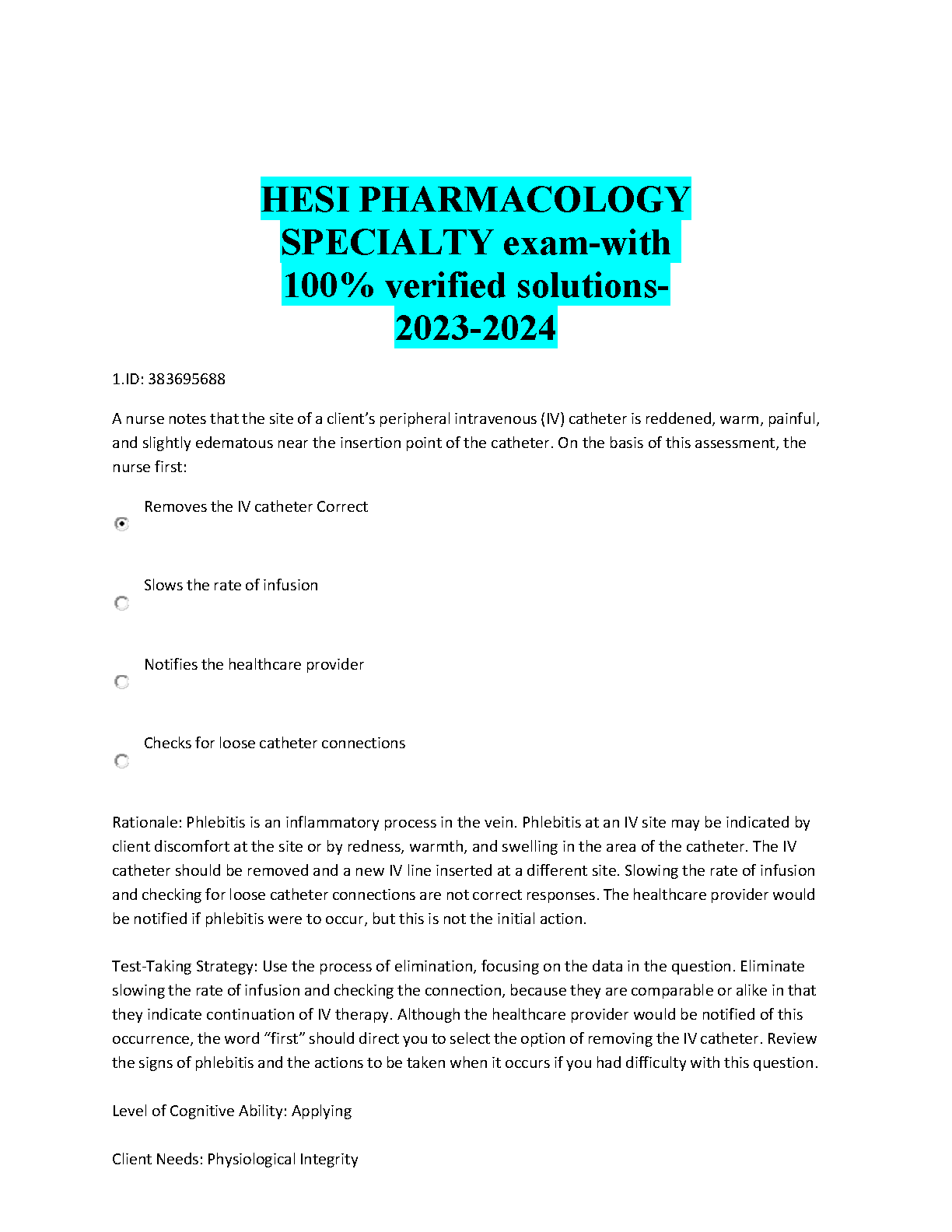 HESI Pharmacology Specialty Exam with 100% Verified Solutions - 2023-2024 Edition by HESI