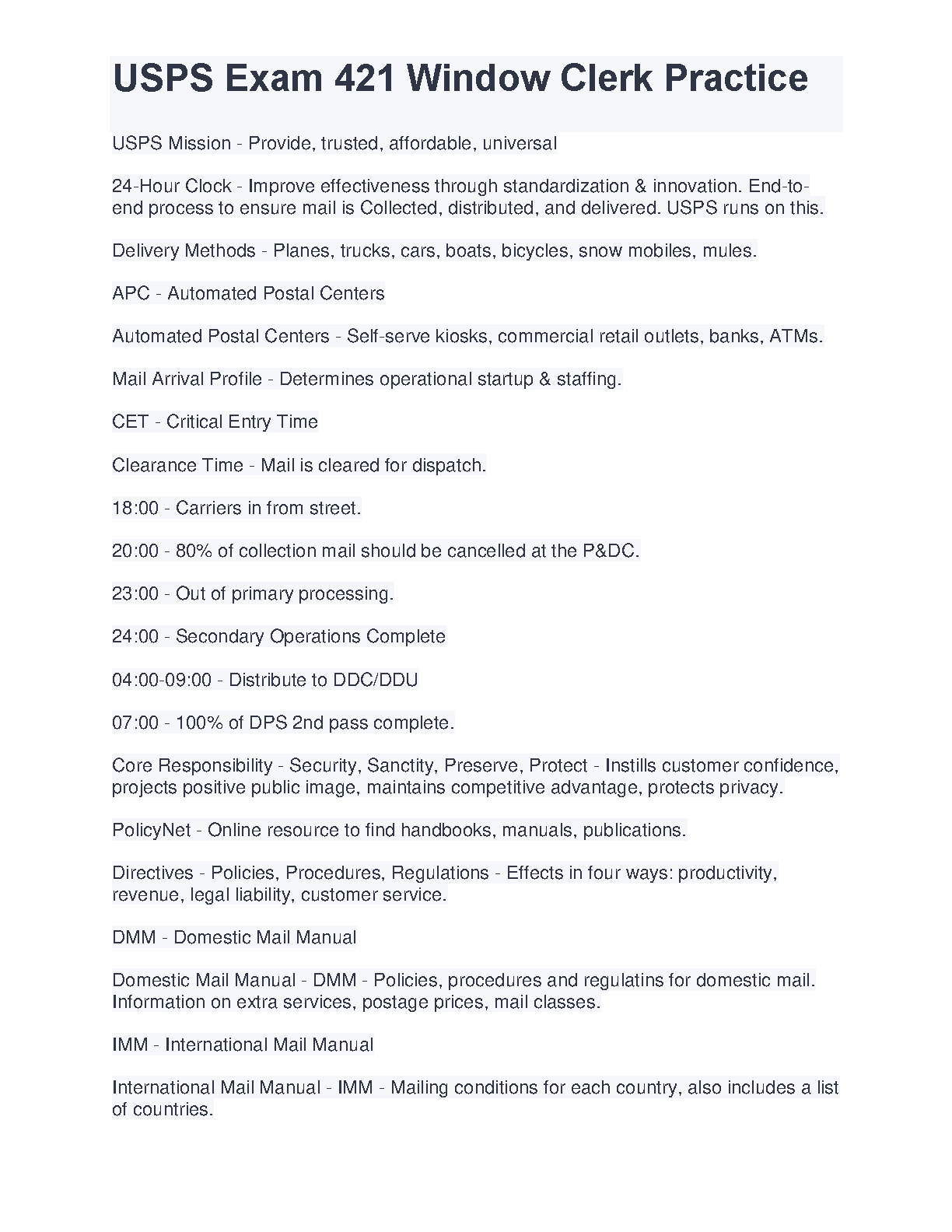 USPS Exam 421 Window Clerk Practice: Pass on Your First Attempt & Avoid Resits