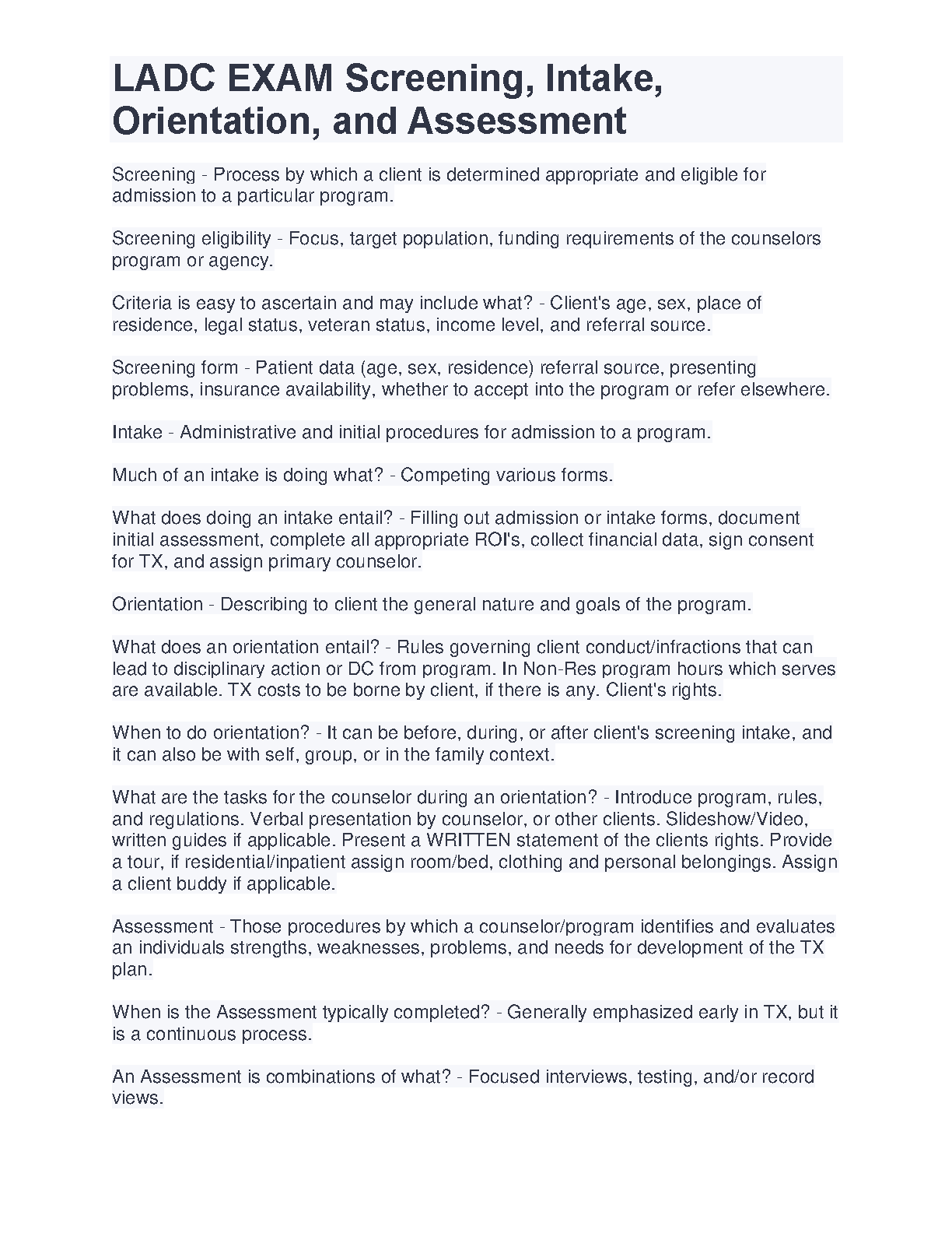 LADC EXAM Screening, Intake, Orientation, and Assessment - A Complete Guide for 2024/2025