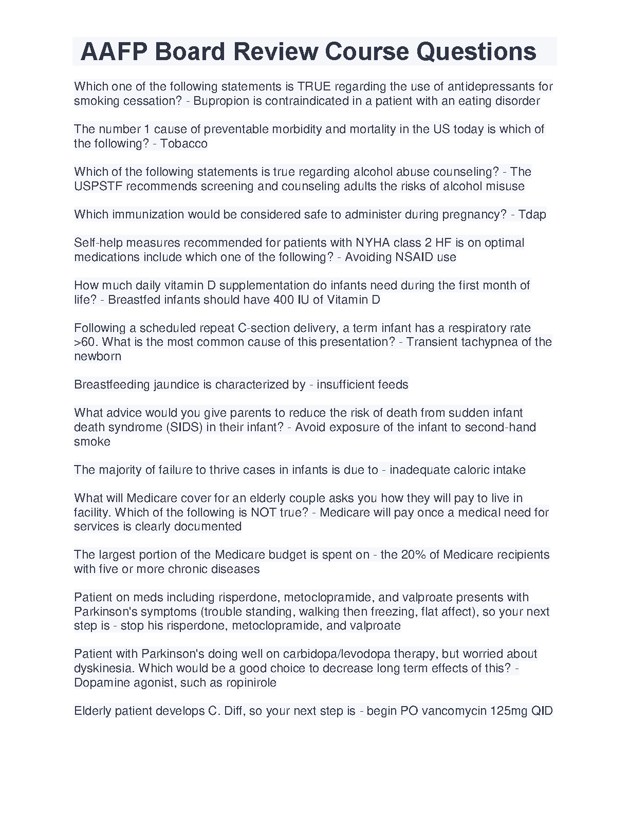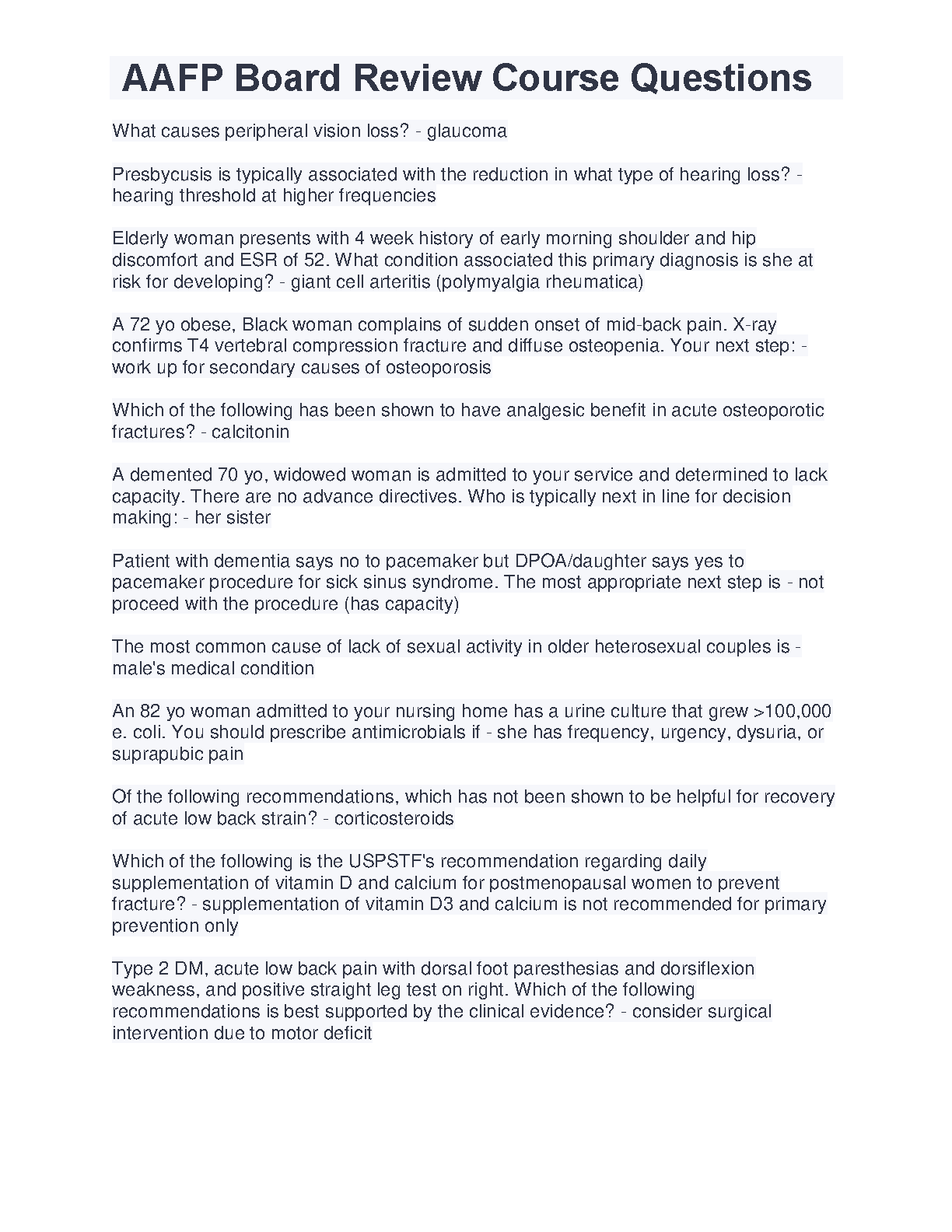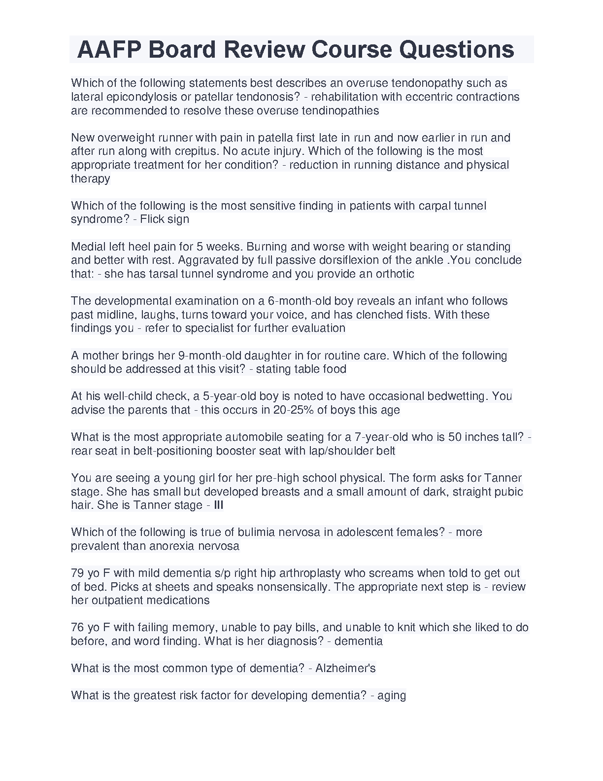 This comprehensive AAFP Board Review Course Questions resource provides a collection of challenging questions designed to help students prepare for their AAFP exam. Covering a wide range of topics, this resource is perfect for ensuring exam success and avoiding resits.