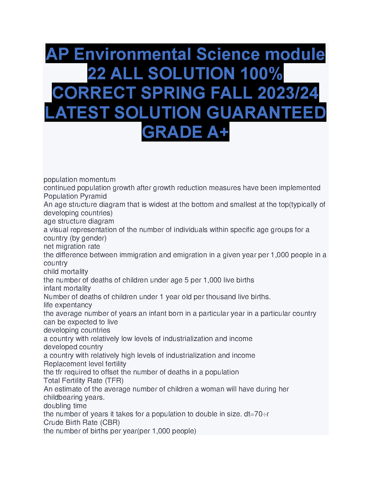 Looking for a guaranteed A+ in your AP Environmental Science course? Get ready for success with this comprehensive solution module for the Spring and Fall 2023/24 terms. This module features all solutions, 100% accurate and ready to boost your grade. Don't settle for less than A+!