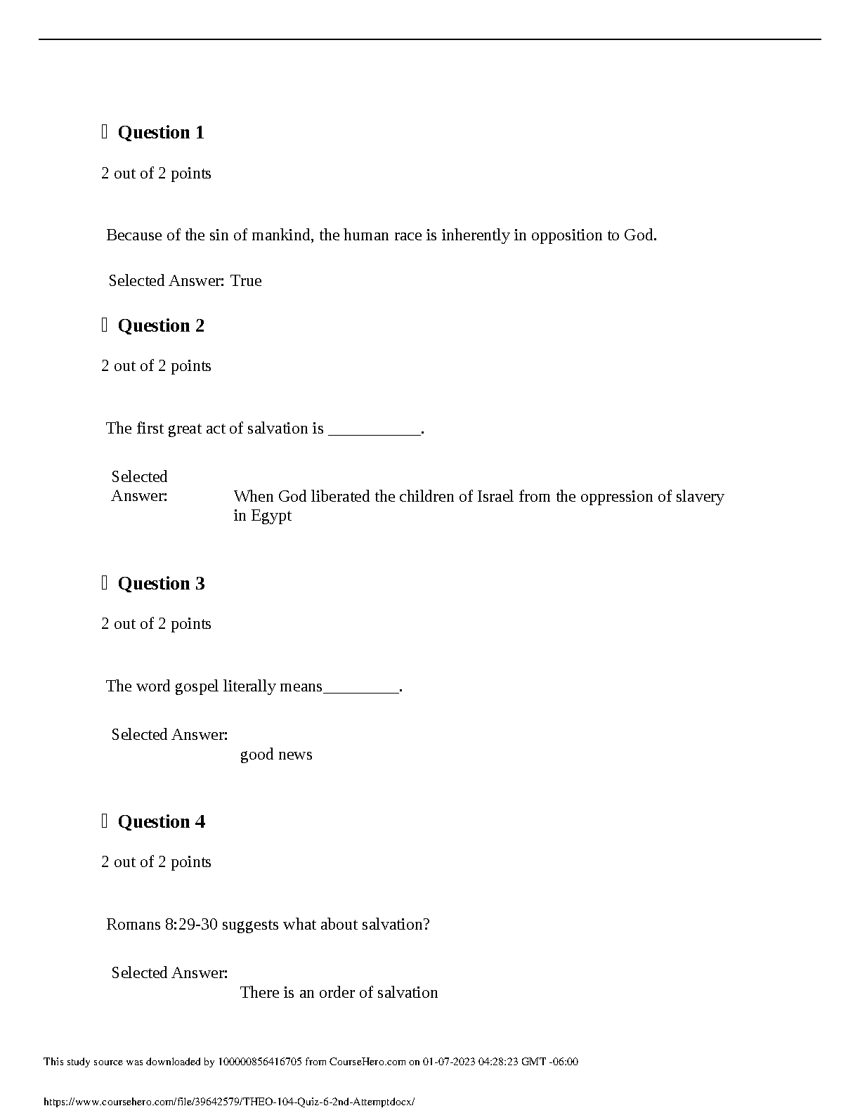THEO 104 Quiz 6-2nd Attempt - Pass the Exam on the First Attempt and Avoid Resits 2024/2025
