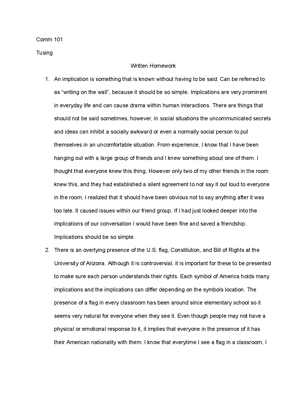 Comm 101: Written Homework by Tusing