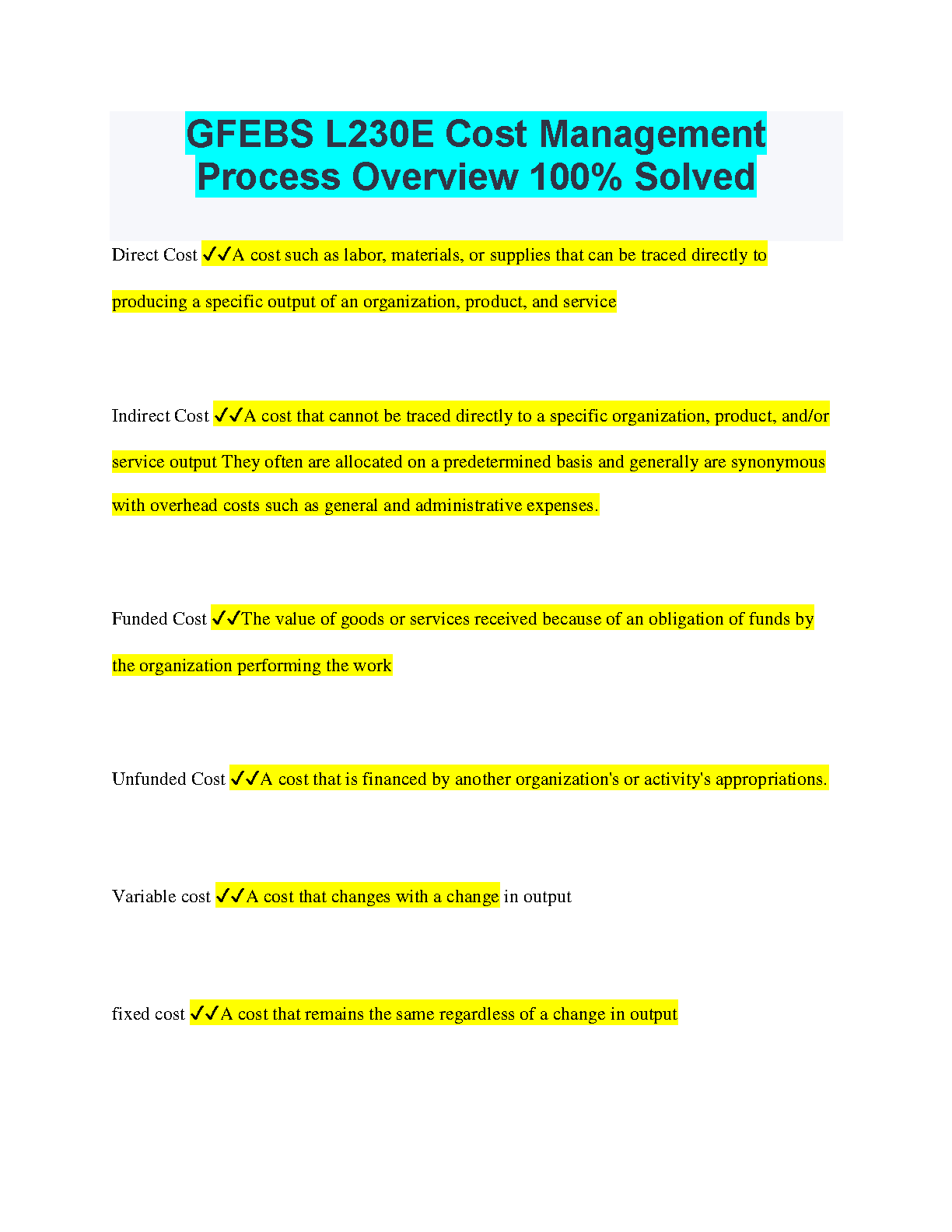 GFEBS L230E Cost Management Process Overview 100% Solved - 2024/2025 Edition