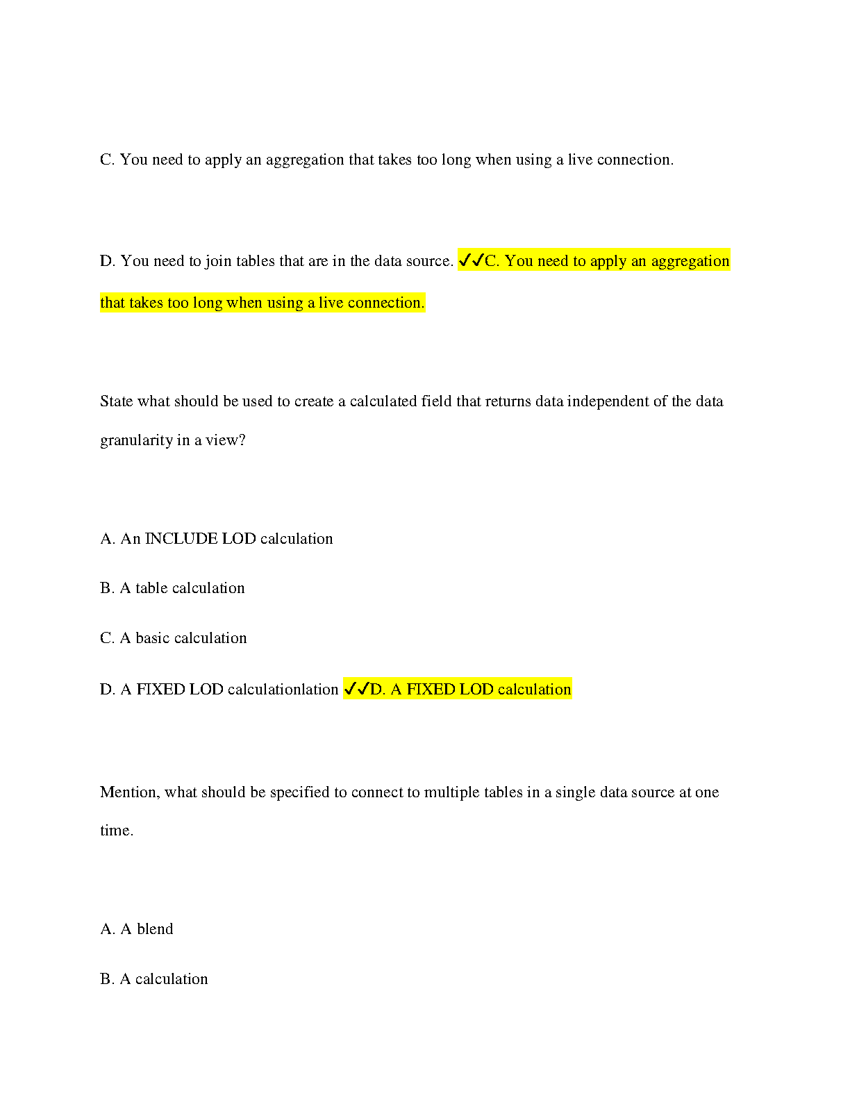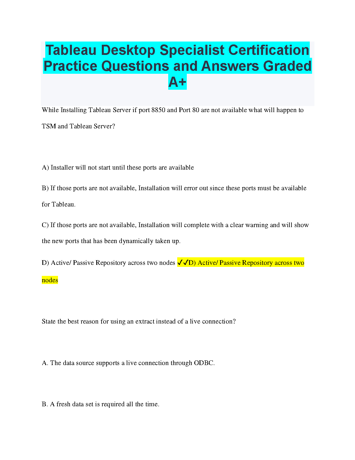 Tableau Desktop Specialist Certification Practice Questions and Answers Graded A+ for 2024/2025 Exam Success
