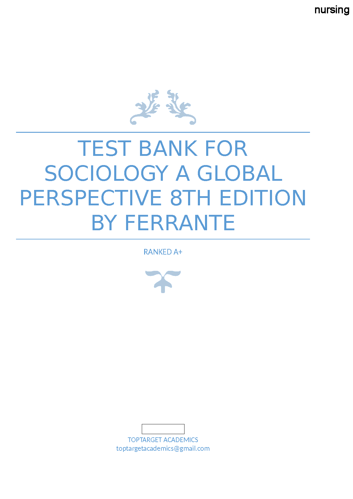 This comprehensive test bank for Sociology: A Global Perspective 8th Edition by John Macionis and Kenneth Plummer is designed to help you achieve success in your sociology course. Featuring a wide range of questions covering all key concepts and theories, this resource will ensure you are well-prepared for your exams.
