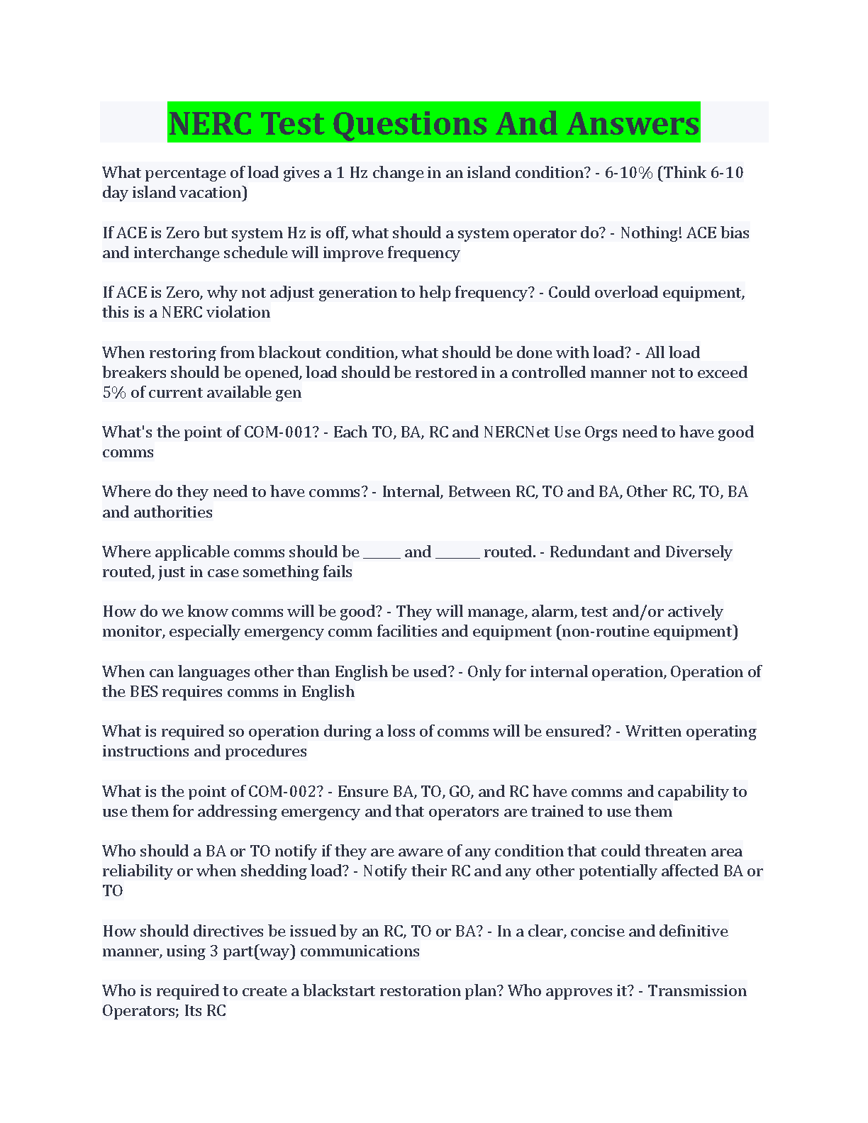 NERC Test Questions And Answers 2024/2025 Edition - Passing Exams On The First Attempt