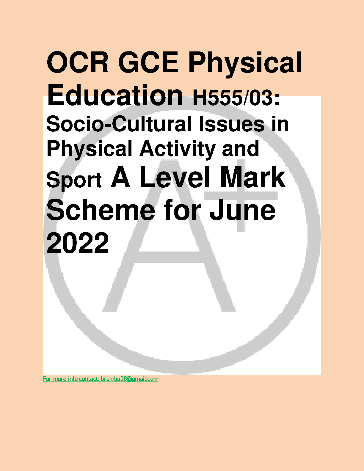 OCR GCE Physical Education H555/03: Socio-Cultural Issues in Physical Activity and Sport A Level Mark Scheme June 2022 - Ace Your Exams with this Comprehensive Guide