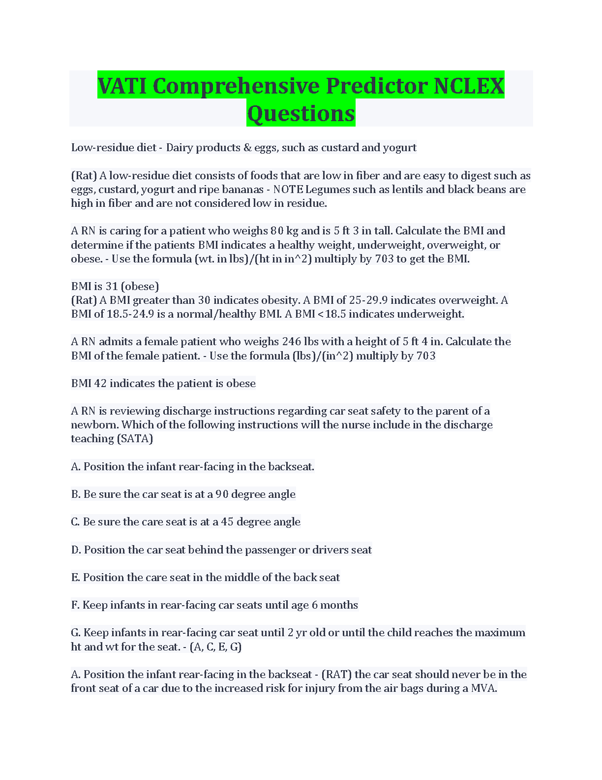 VATI Comprehensive Predictor NCLEX Questions AND ANSWERS LATEST AND RATED A+