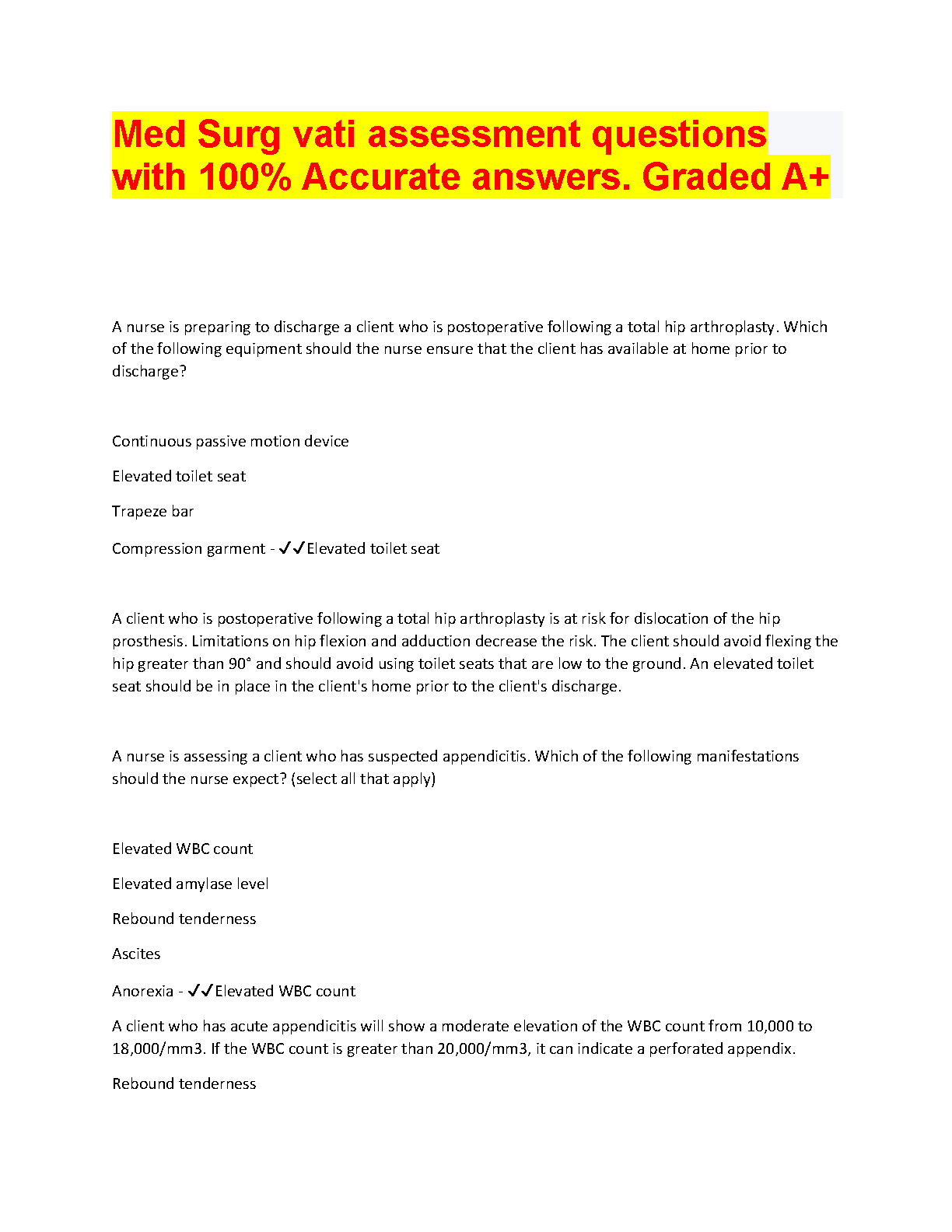 Med Surg VATI assessment questions with 100% Accurate answers Graded A+ 2023/2024. DOWNLOAD on www.hackedexams.com INSTANTLY.