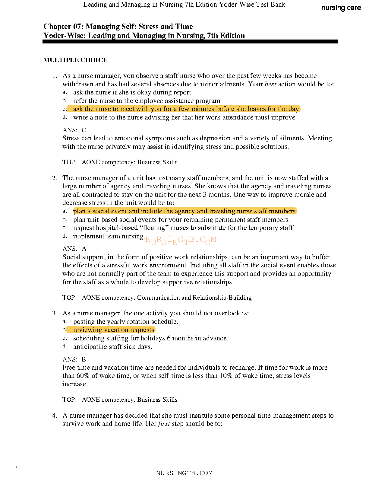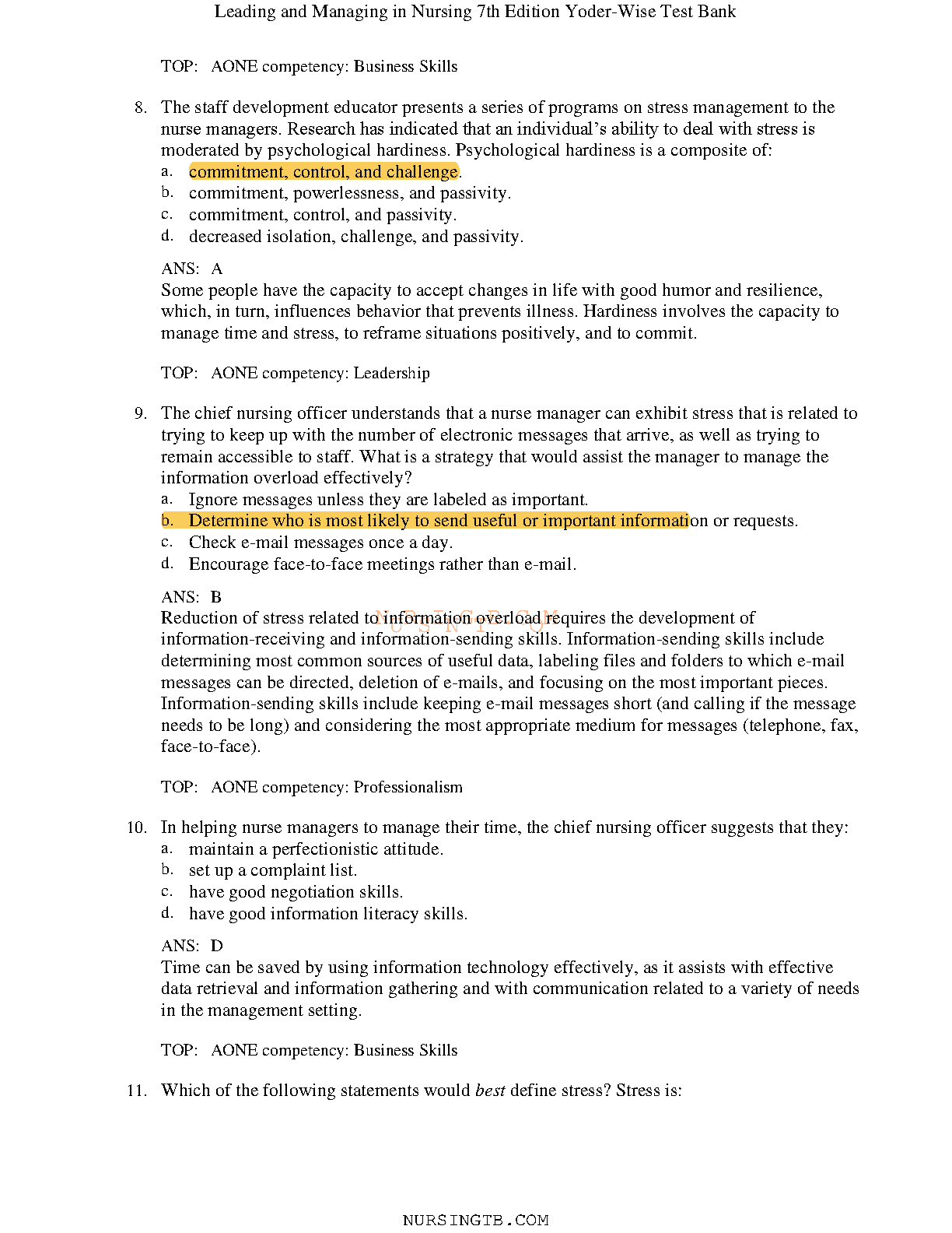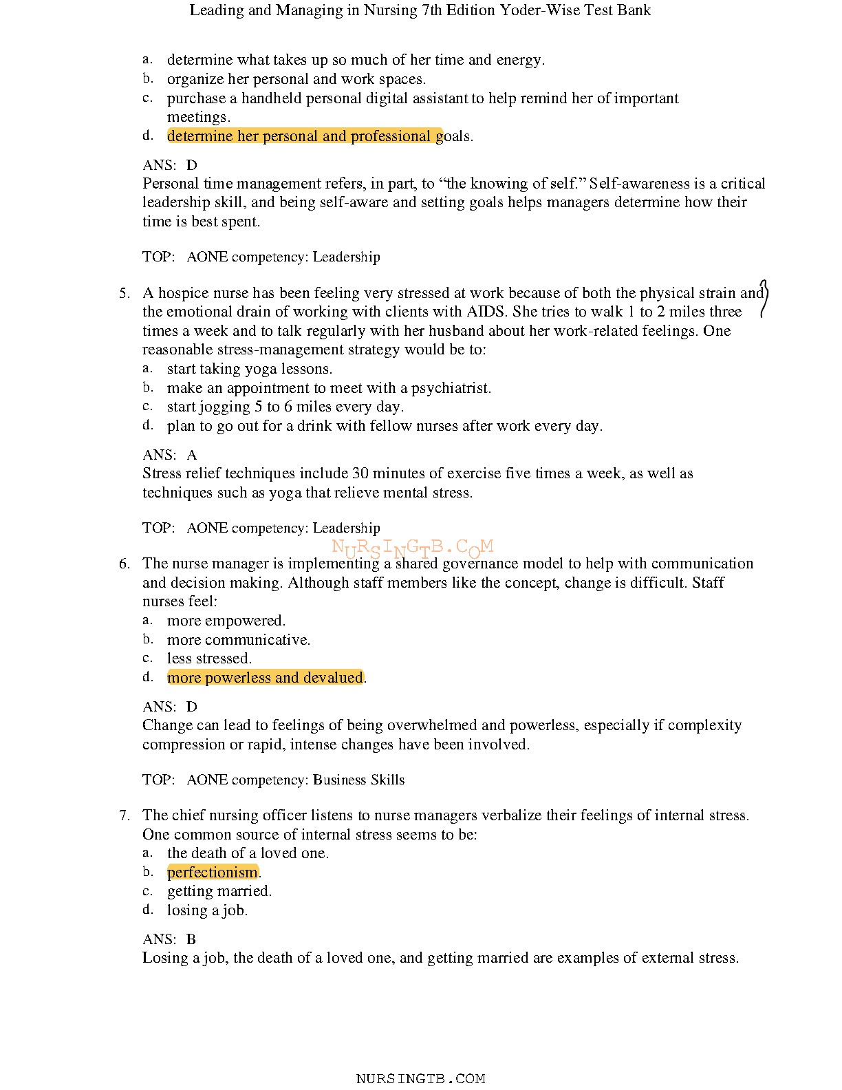 Yoder-Wise: Leading and Managing in Nursing, 7th Edition Test Bank by Barbara Yoder-Wise