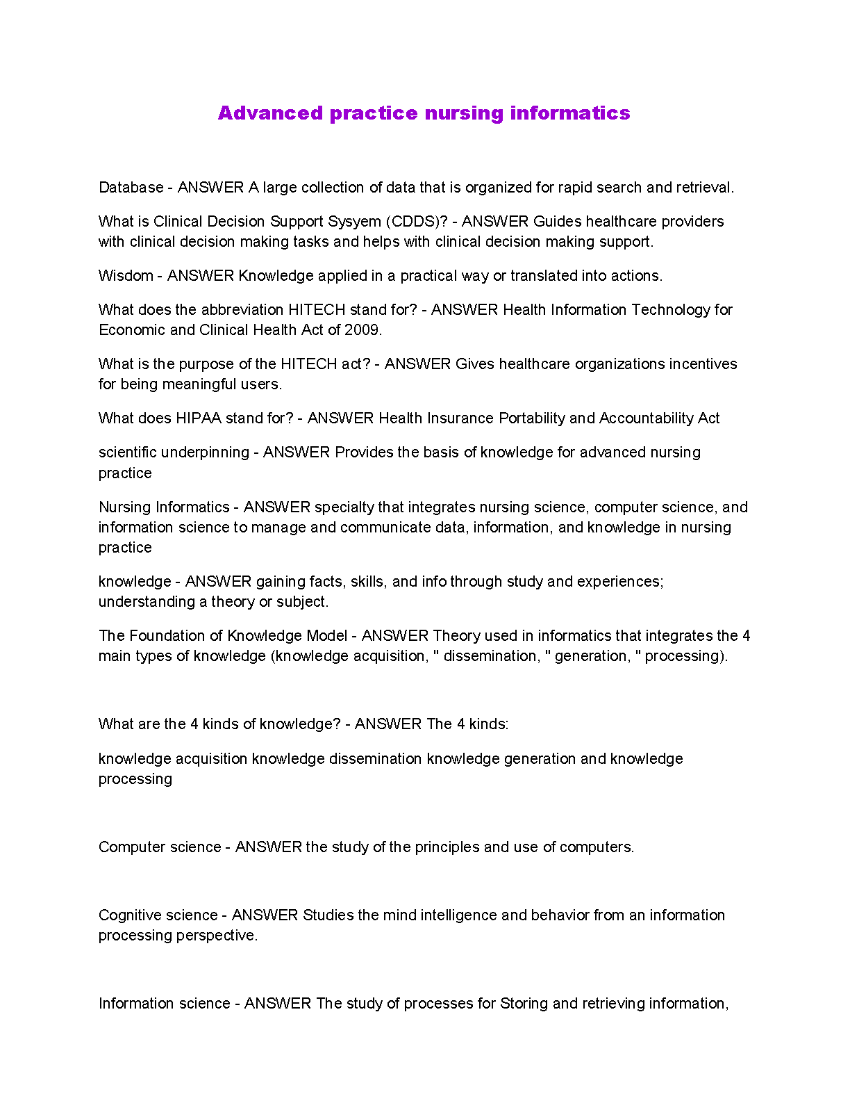 Dive into the world of advanced practice nursing informatics with this insightful resource. Explore key concepts like databases, clinical decision support systems, and the HITECH Act, gaining valuable knowledge to enhance your practice.