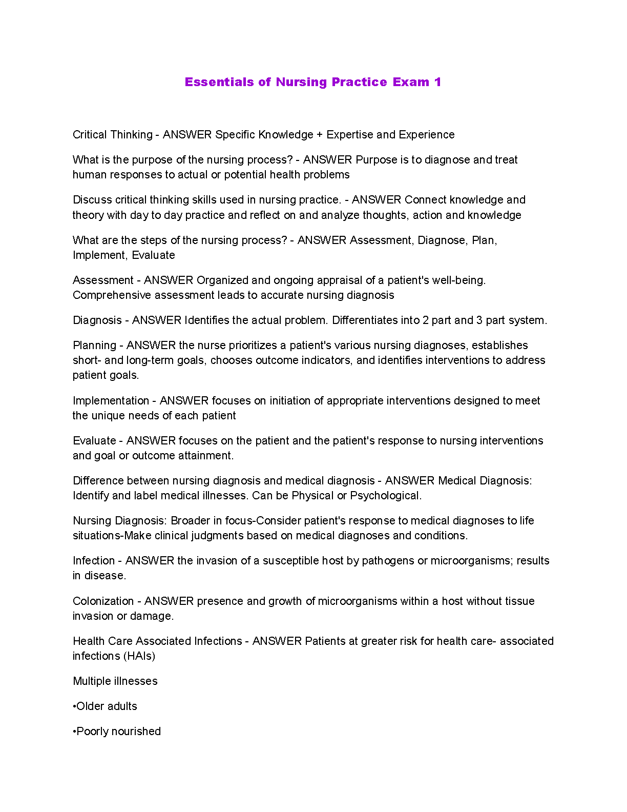 Essentials of Nursing Practice Exam 1 - 2024/2025 Edition - Mastering Nursing Concepts For Exam Success