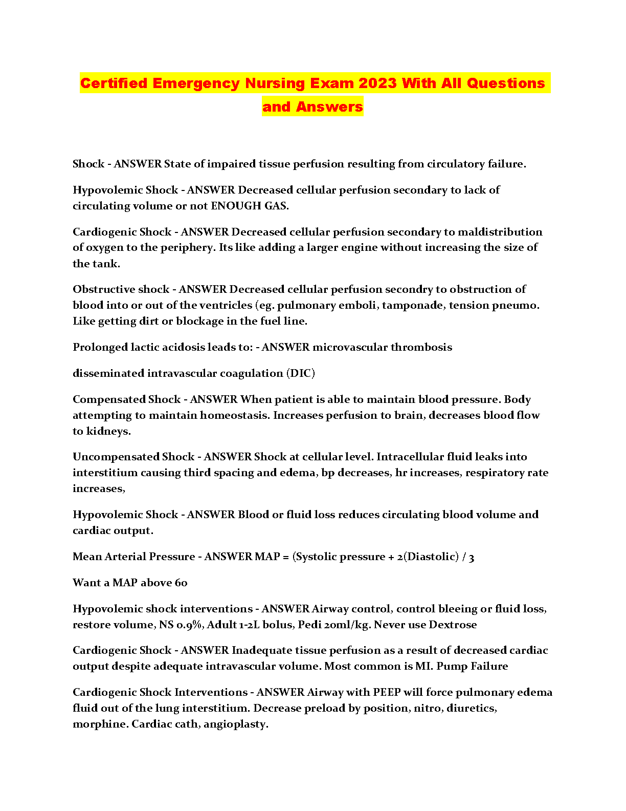 Certified Emergency Nursing Exam 2023 With All Questions and Answers by Unknown Author