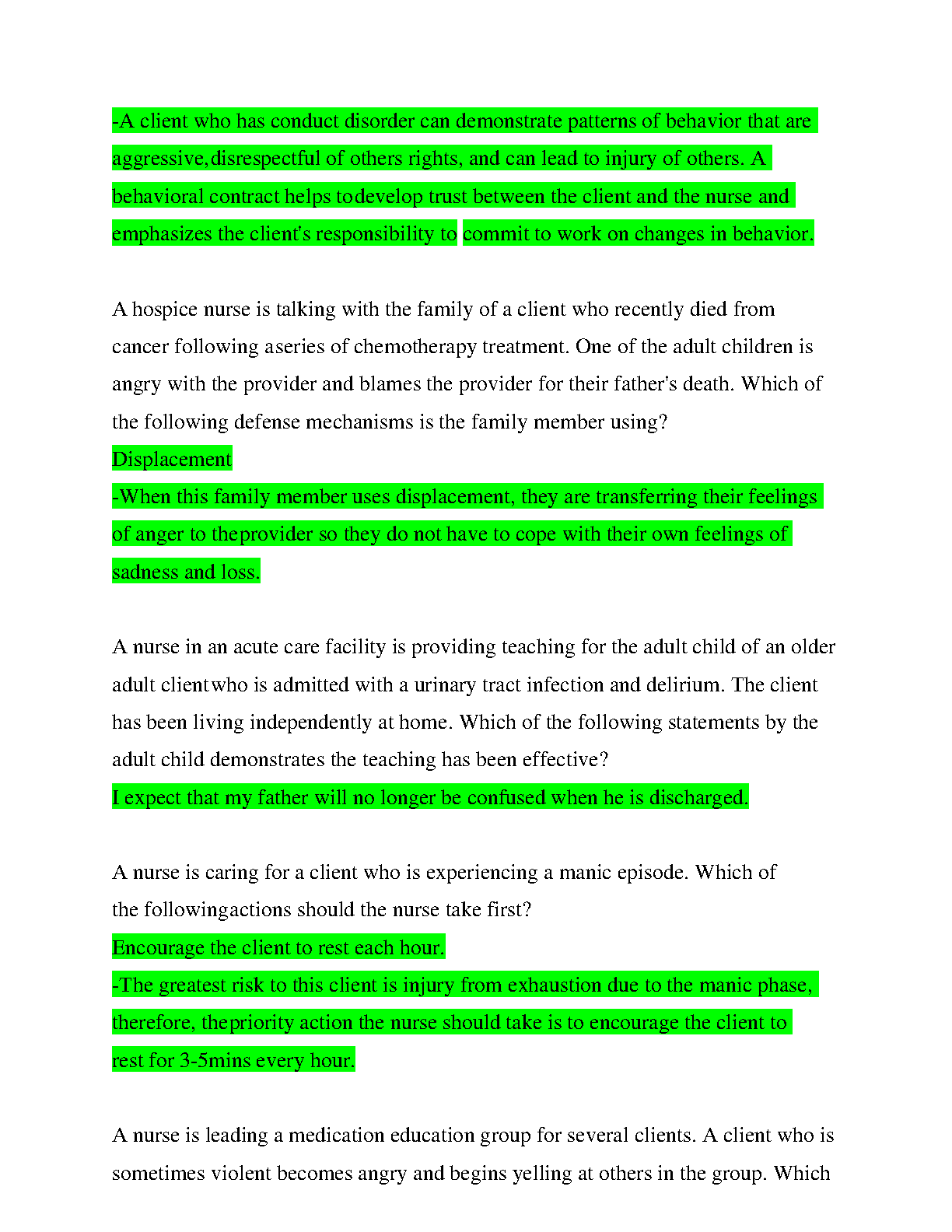 VATI Mental Health /VATI Greenlight STUDY SET Questions and Answers correct GRADED A+
