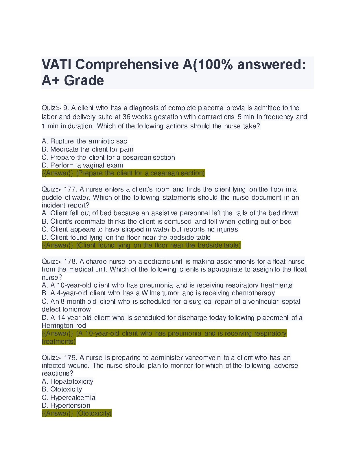 VATI Comprehensive A 100% answered CORRECTLY GRADED A+