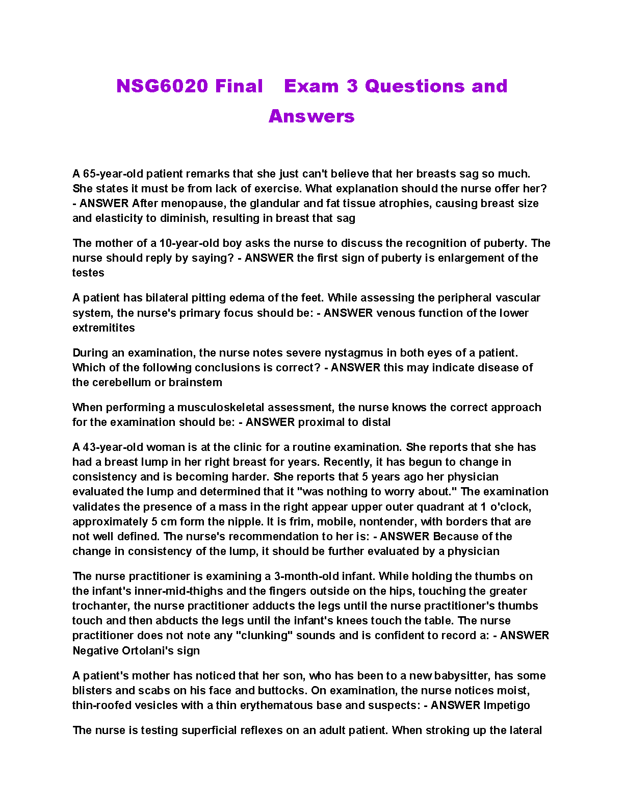 NSG6020 Final Exam 3 Questions and Answers for 2024/2025