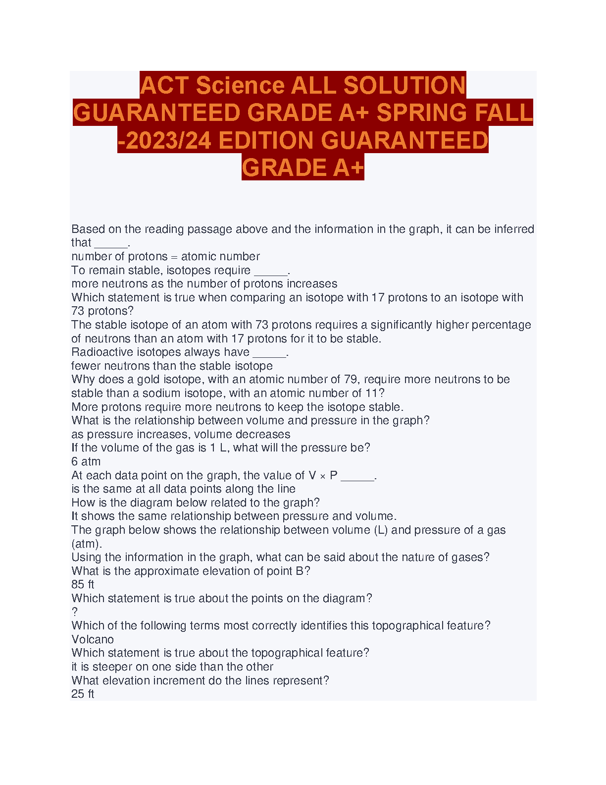 ACT Science All Solution Guaranteed Grade A+ Spring Fall - 2023/24 Edition Guaranteed Grade A+