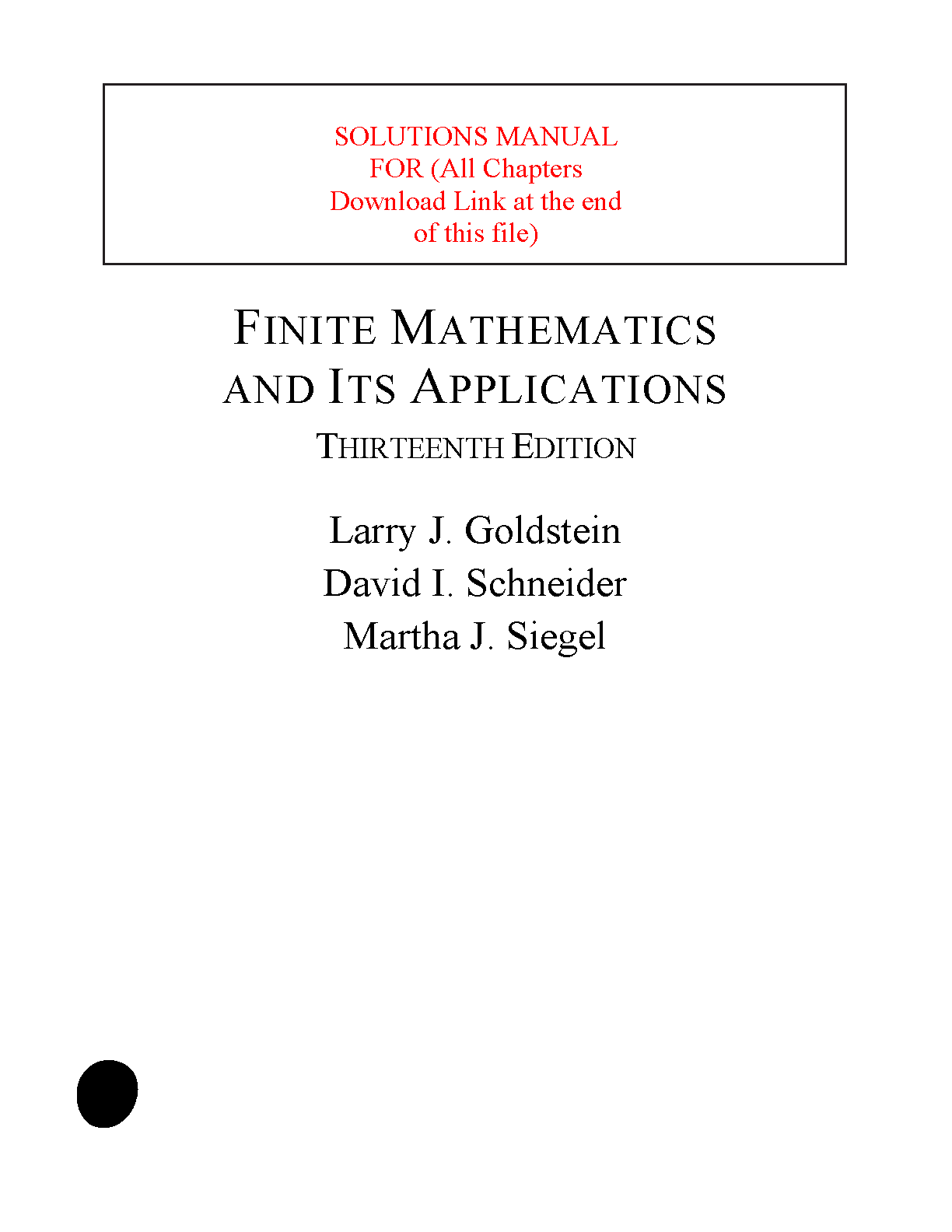 Finite Mathematics and Its Applications 13th Edition by Larry J. Goldstein, David I. Schneider, Martha J. Siegel Solutions Manual