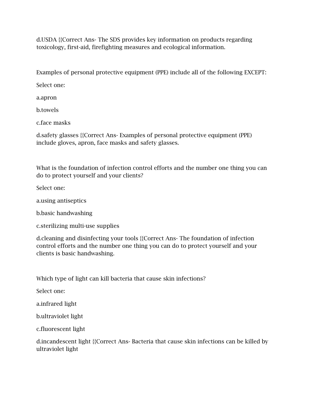 Prepare for your Esthetician exam with this practice test covering a variety of essential topics. This test includes two sets of practice questions designed to familiarize you with the exam format and content. Each question includes a detailed explanation of the correct answer. This practice test can help you identify areas where you may need additional study and boost your confidence for exam day.
