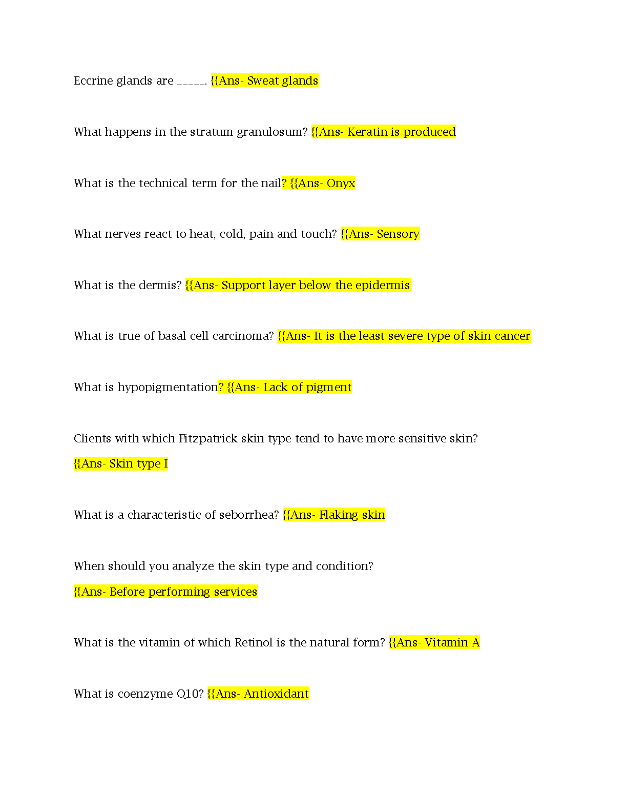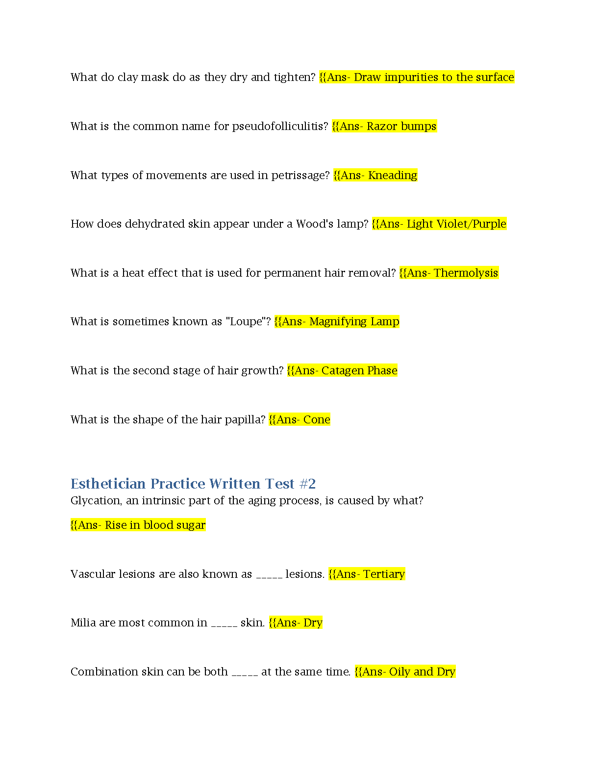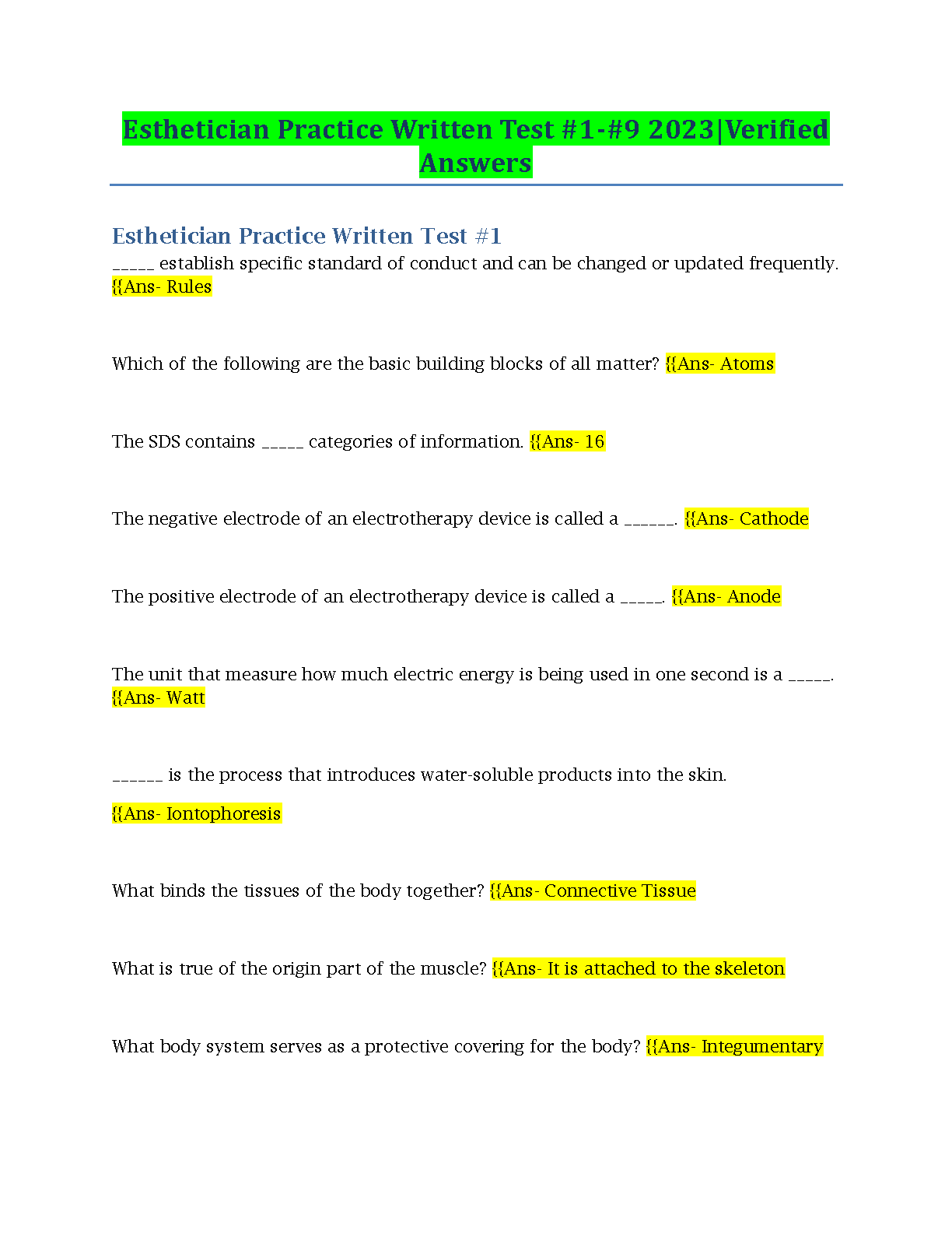 Esthetician Practice Written Test #1 2023/2024 Answers - Ace Your Exams on the First Attempt!