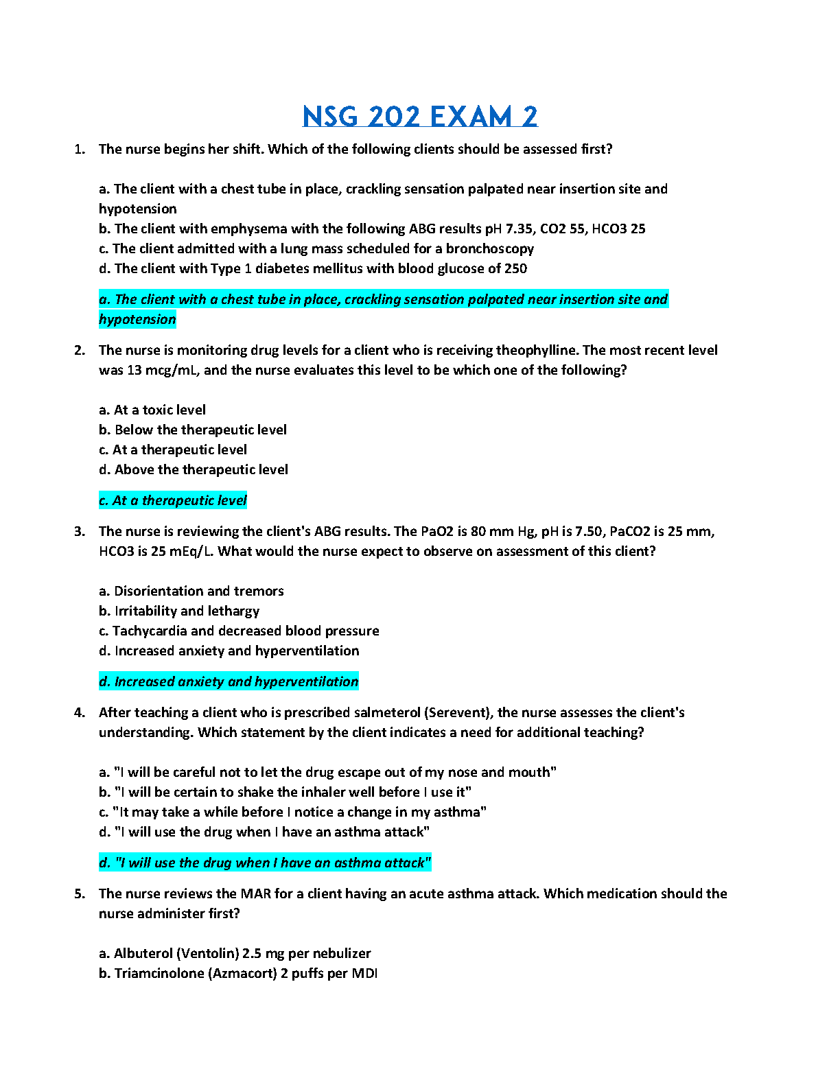 Ace your NSG 202 exam on the first attempt with our comprehensive study guide designed for the 2024/2025 academic year. This resource covers crucial nursing concepts and practice questions, ensuring you're well-prepared for your exam.