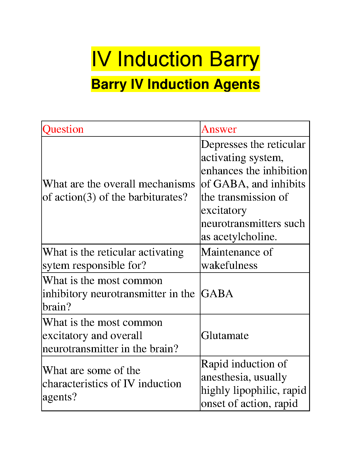 IV Induction Agents by Barry: A Comprehensive Guide for Students