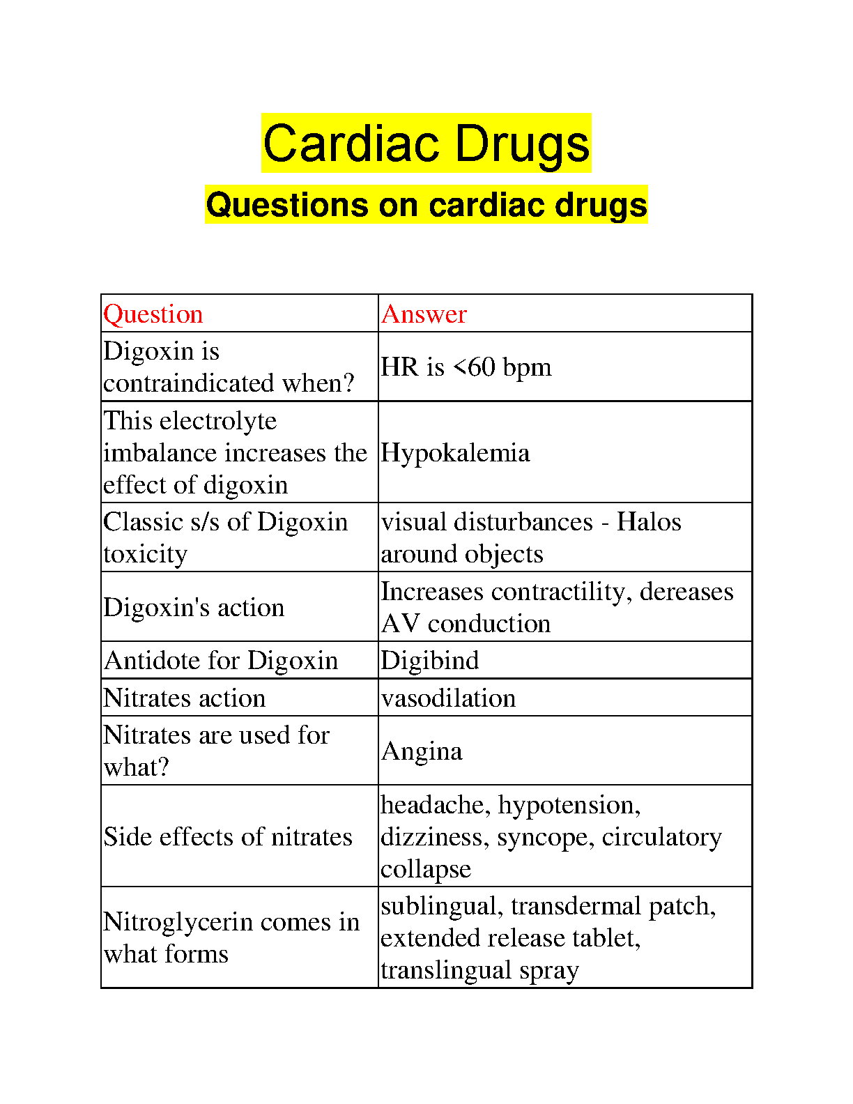Cardiac Drugs: Questions and Answers for Nursing Students