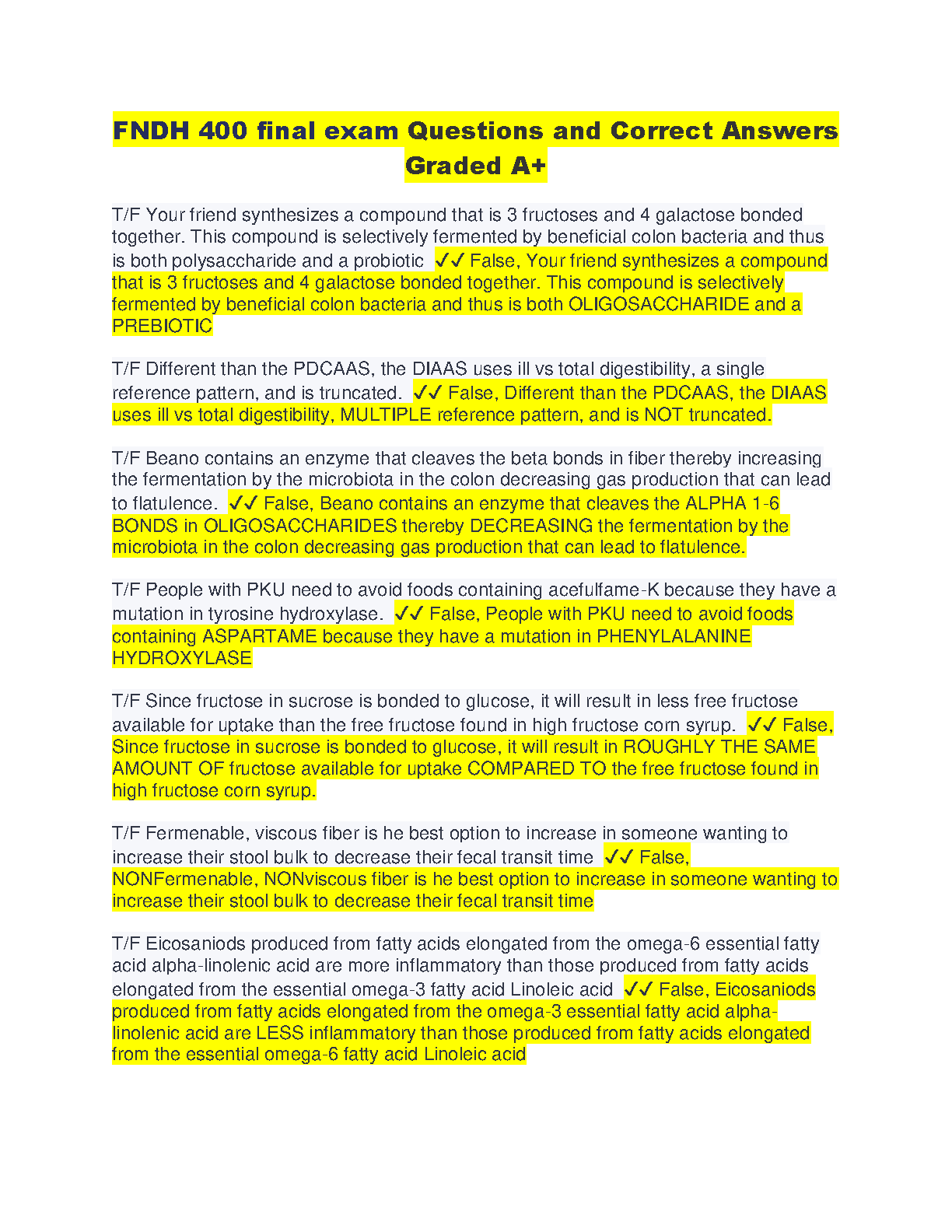 Ace your FNDH 400 final exam with this comprehensive set of exam questions and answers, carefully curated for the 2024/2025 academic year. This resource is designed to help you master the key concepts and understand the important points in the course, ensuring success on your first attempt and avoiding resits.