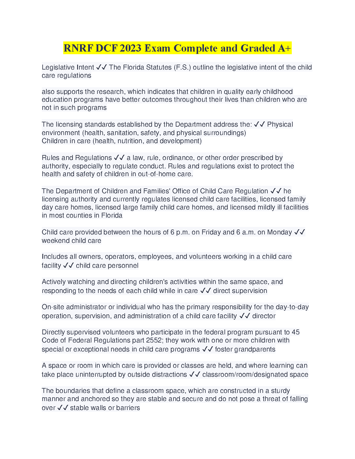 RN/RF DCF 2023 Exam Complete and Graded A+