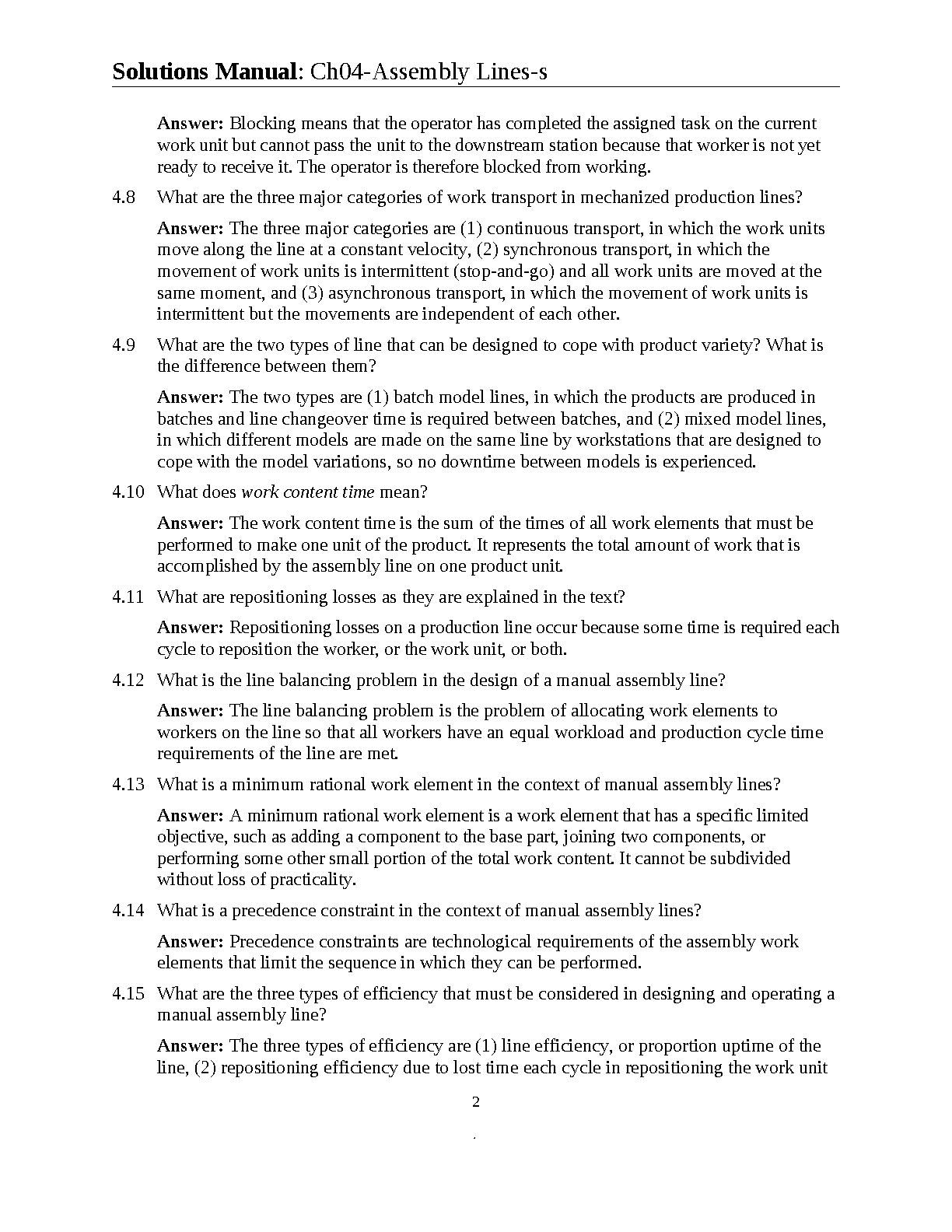 Solutions Manual for Introduction to Manufacturing Systems, 2nd Edition by Mikell P. Groover