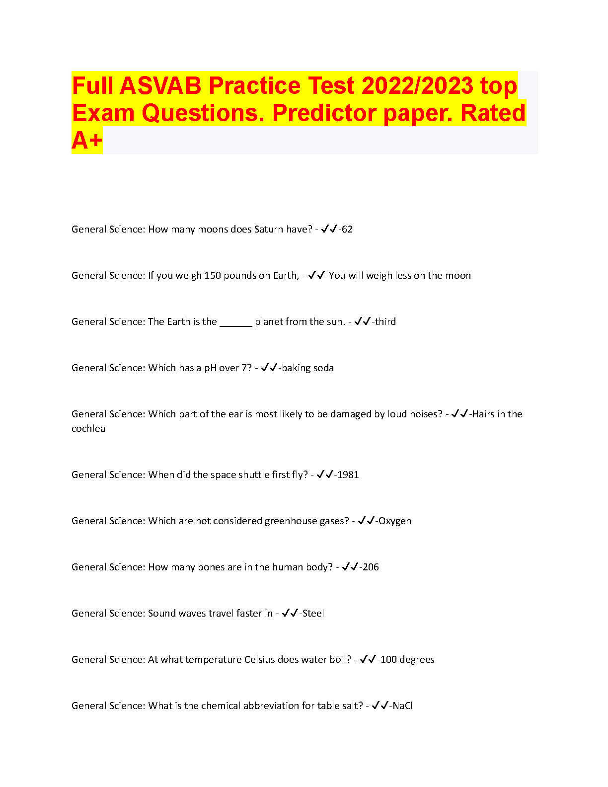 ASVAB Practice Test 2022/2023 Top Exam Questions: Predictor Paper Rated A+