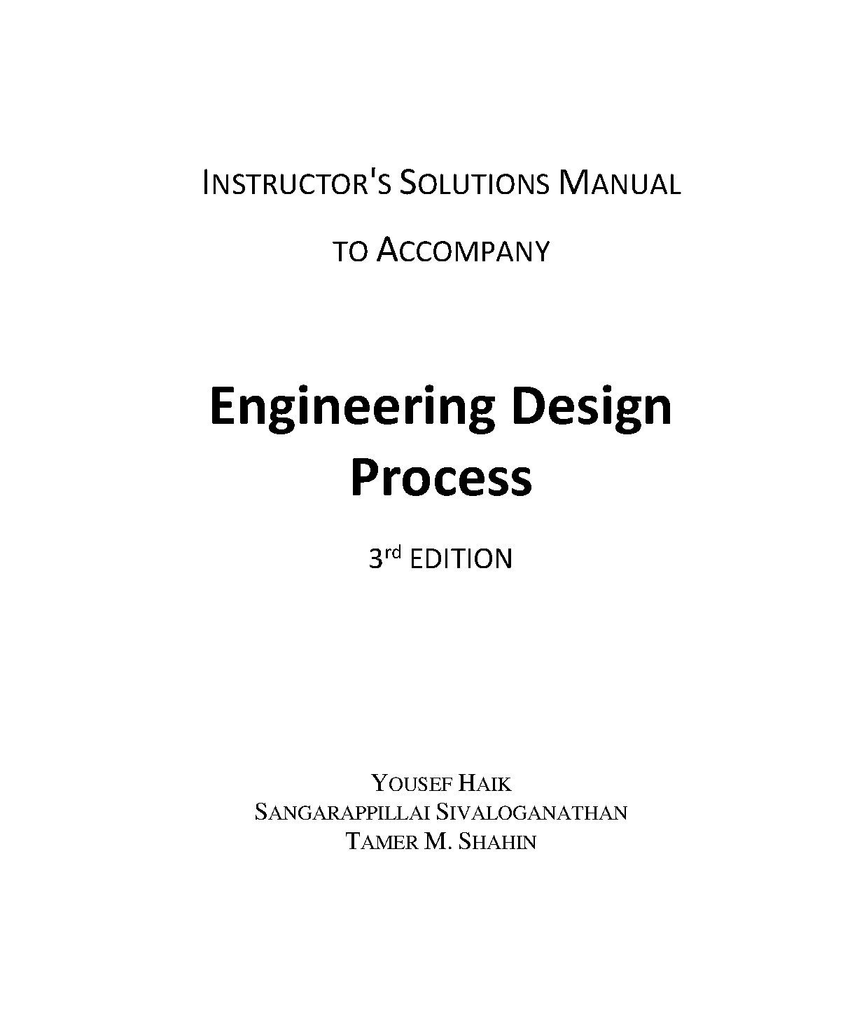 Engineering Design Process 3rd Edition Solutions Manual by Yousef Haik, Sangarappillai Sivaloganathan, and Tamer M. Shahin