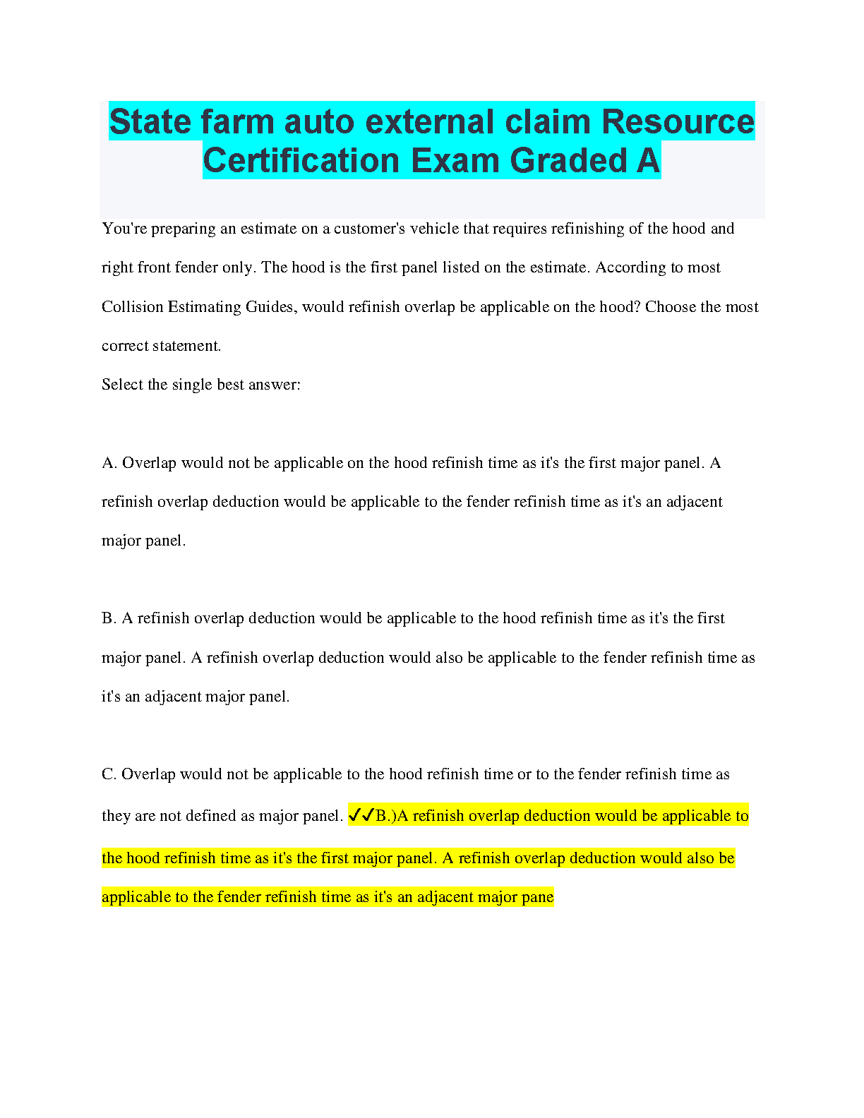 This comprehensive resource is designed to help you ace your State Farm Auto External Claim Resource Certification Exam Graded A, maximizing your chances of passing on the first try. This resource is designed to help you pass your exams and avoid resits.