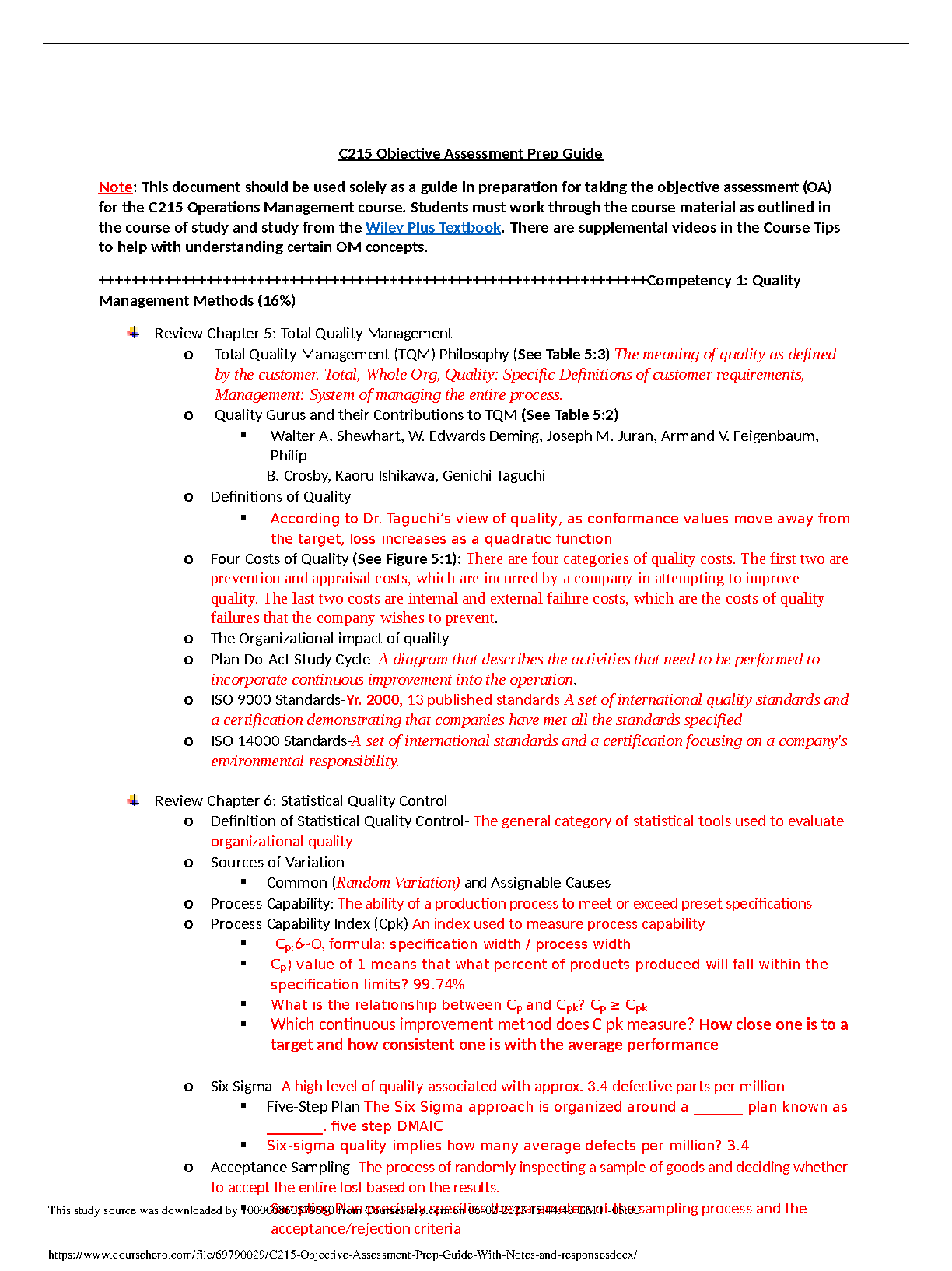 C215 Objective Assessment Prep Guide: A Comprehensive Guide for Operations Management Students - 2024/2025 Edition By Dr. Taguchi, Walter A. Shewhart, W. Edwards Deming, Joseph M. Juran, Armand V. Feigenbaum, Philip Crosby, Kaoru Ishikawa, Genichi Taguchi