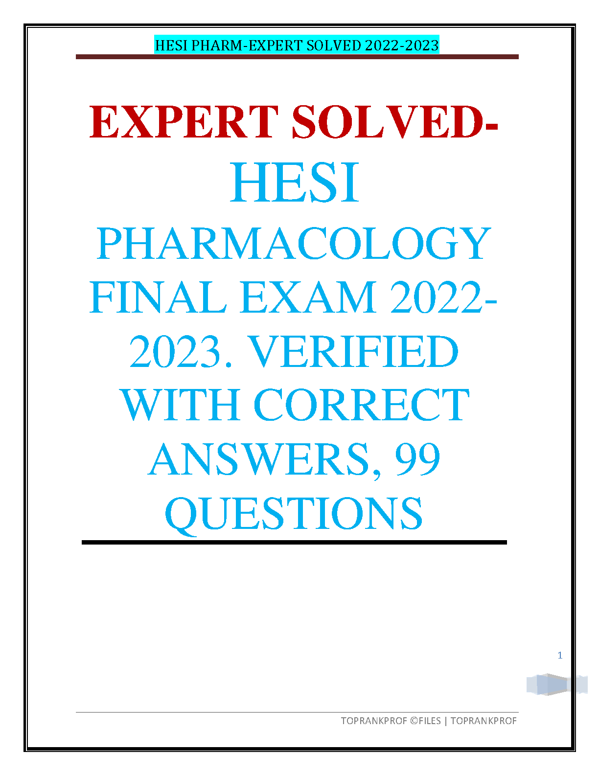 HESI Pharmacology Final Exam 2022-2023 Expert Solved - 99 Questions