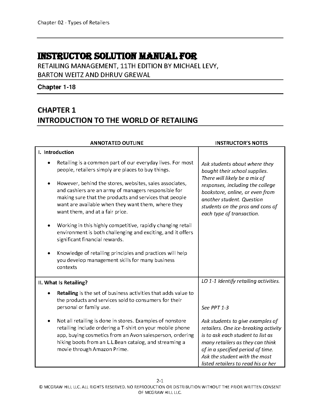Instructor Solution Manual for Retailing Management, 11th Edition by Michael Levy, Barton Weitz, and Dhruv Grewal