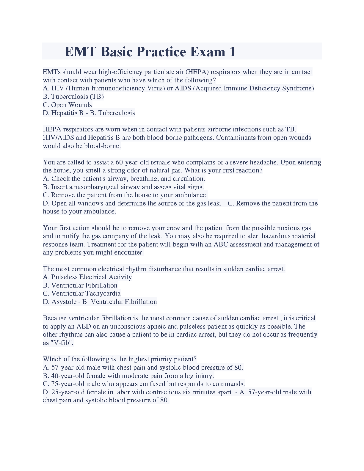 This EMT Basic Practice Exam 1 is designed to help you master the essential concepts needed to pass your EMT certification exam on the first try. With realistic scenarios and detailed explanations, you'll gain confidence in your knowledge and skills.